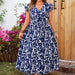 Designed for everyday use, the Plus Size Printed Dress Blue V Neck Short Sleeve offers fluid movement and timeless appeal.