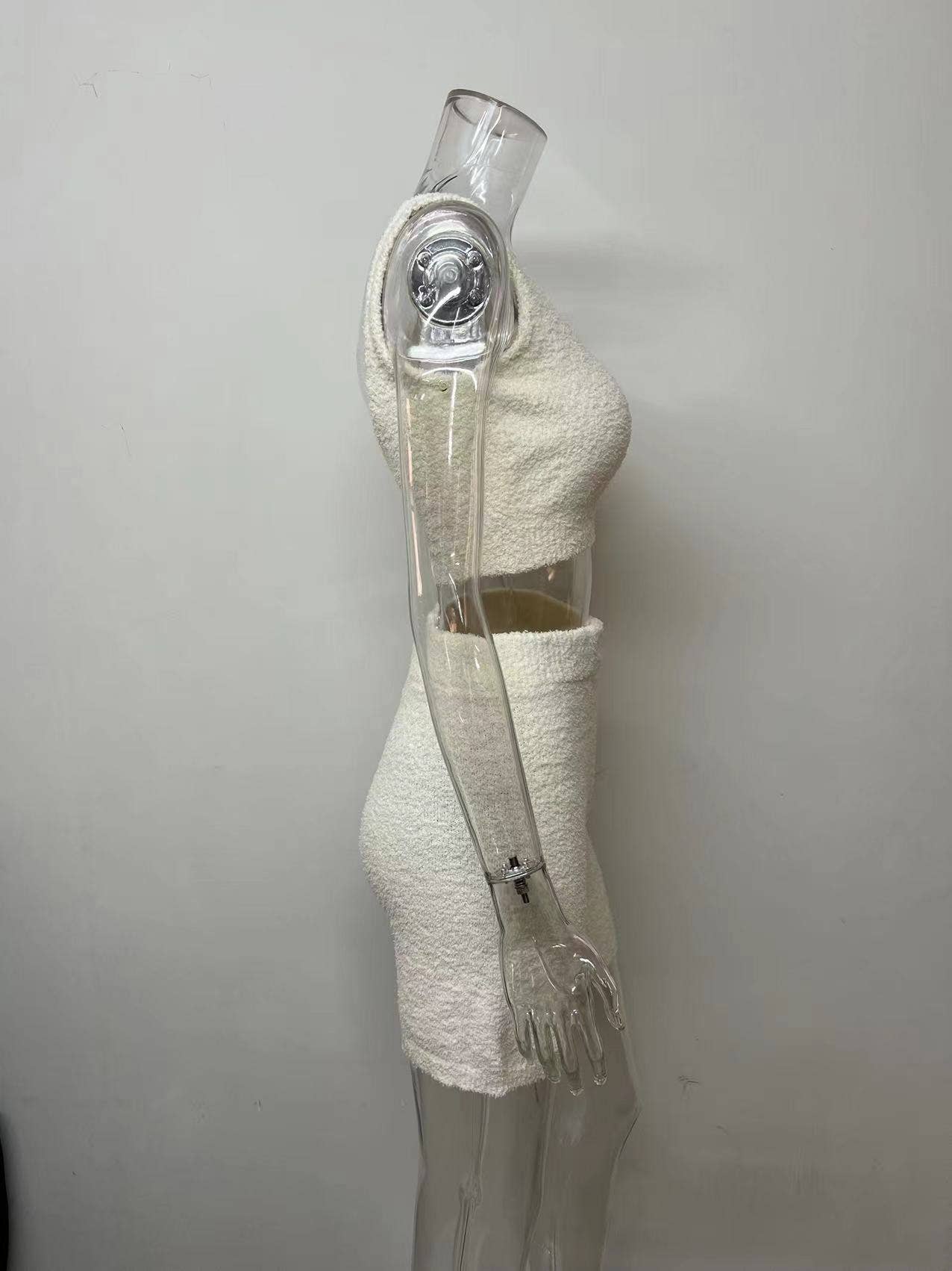 Plush V-Neck Sexy Crop Top And Shorts Set