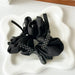 The Polka Dot French Bow Hair Tie adds a refined touch with its clean and modern silhouette.