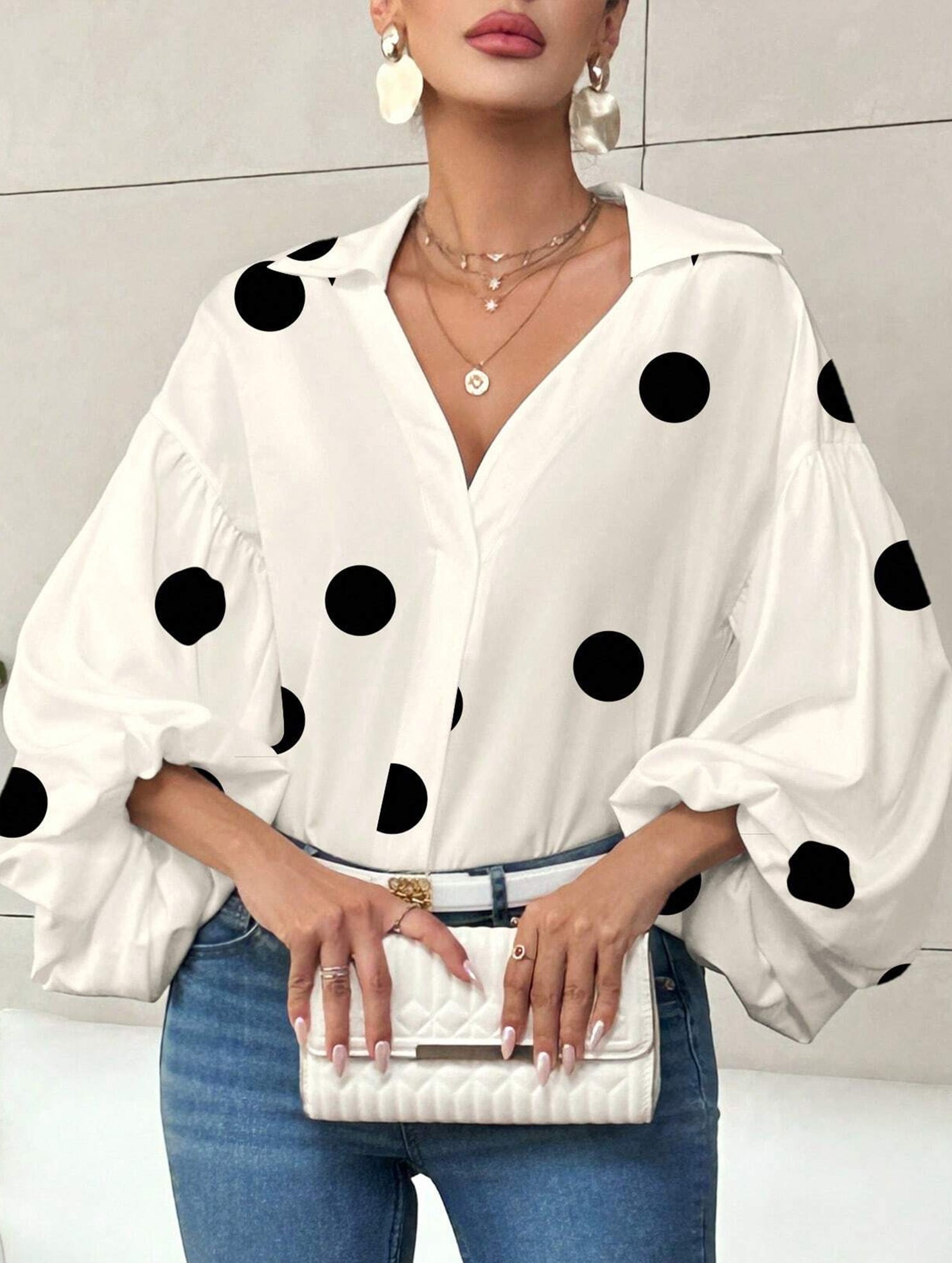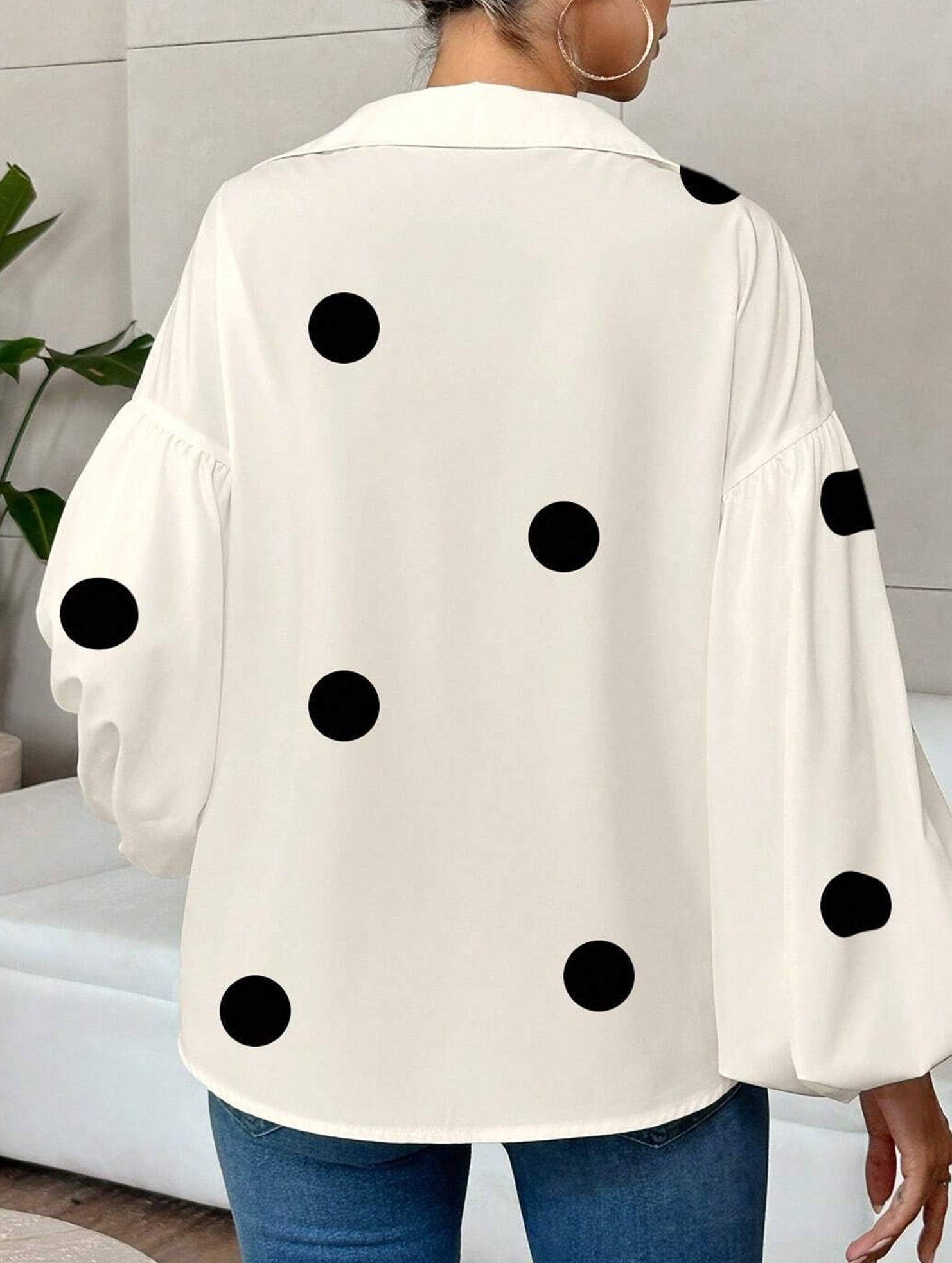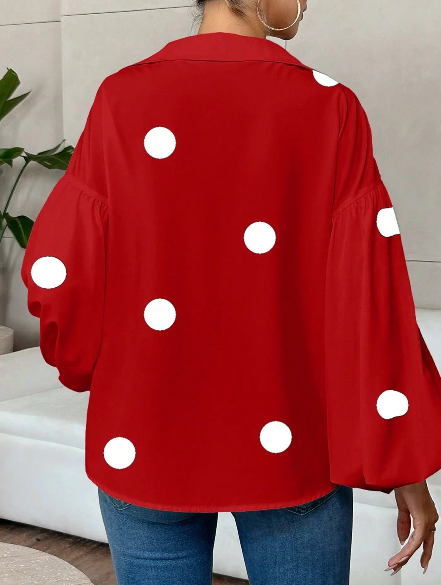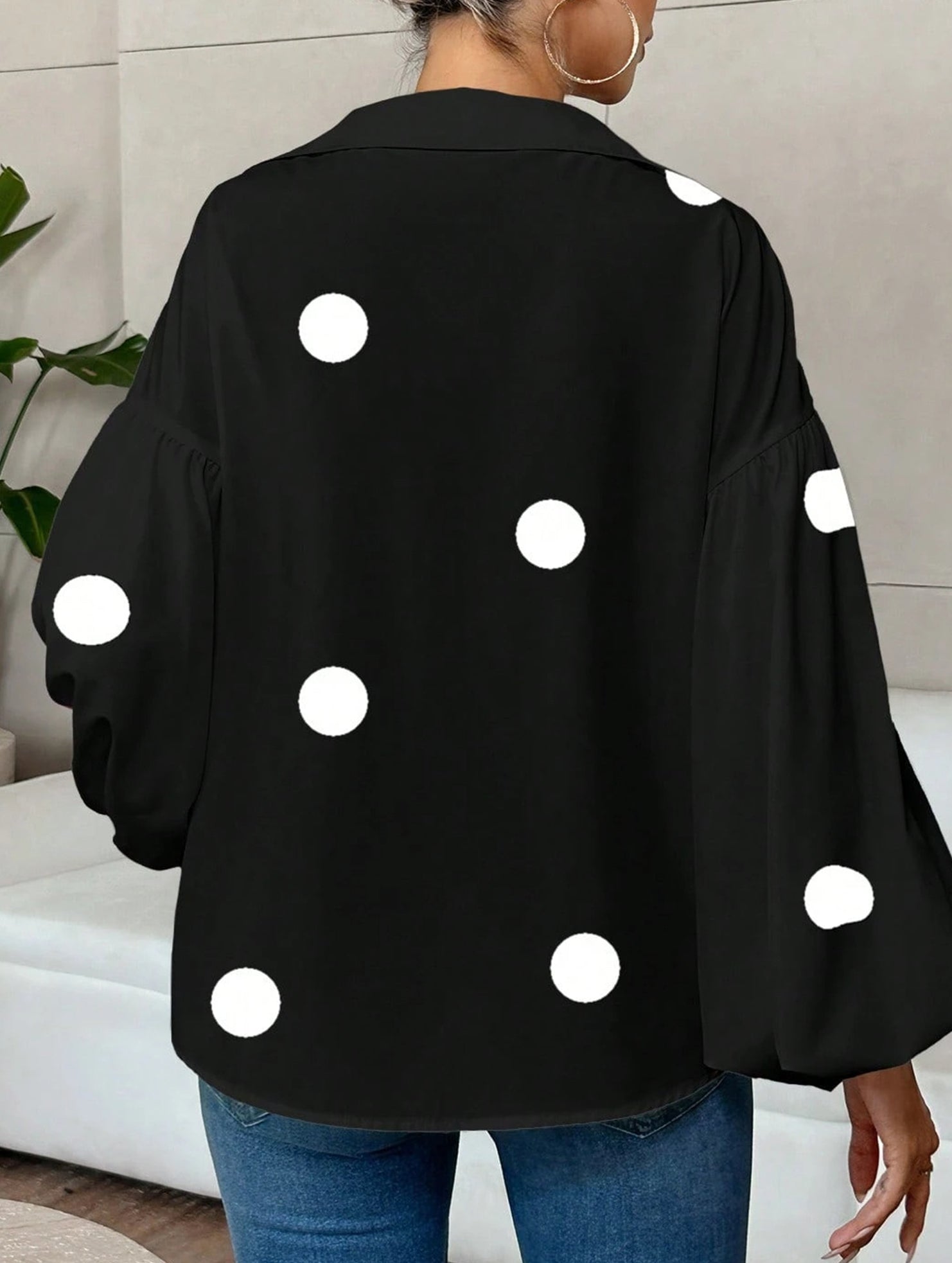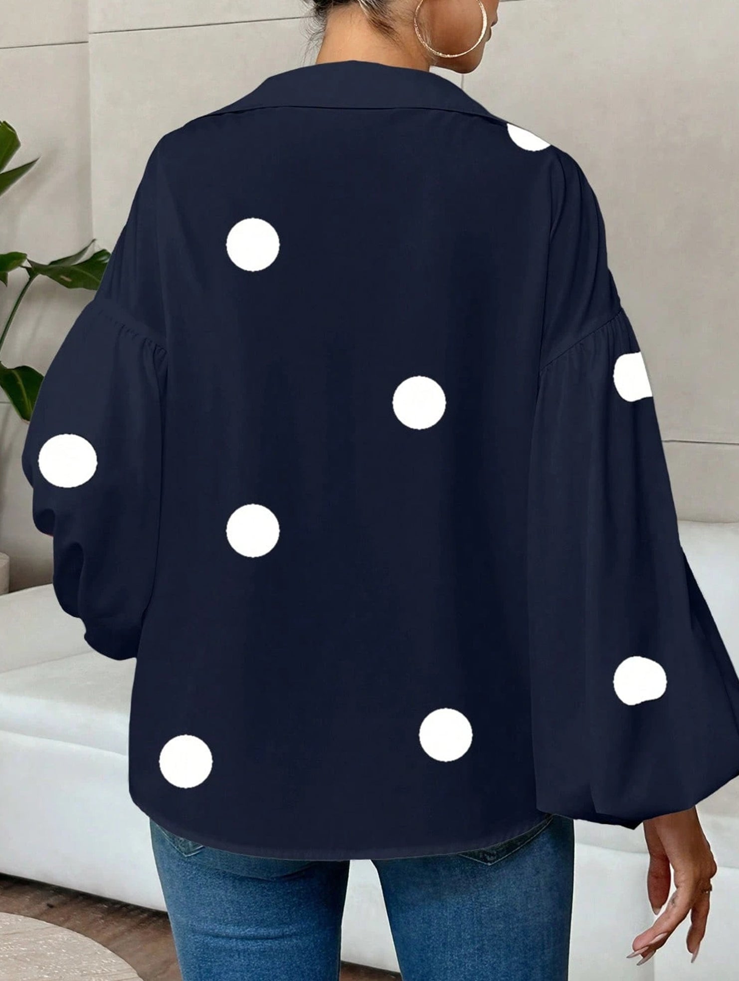 xPolka dot V-neck loose bubble long-sleeved shirt