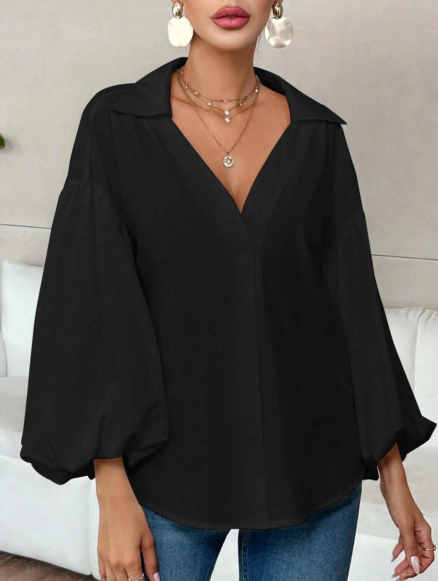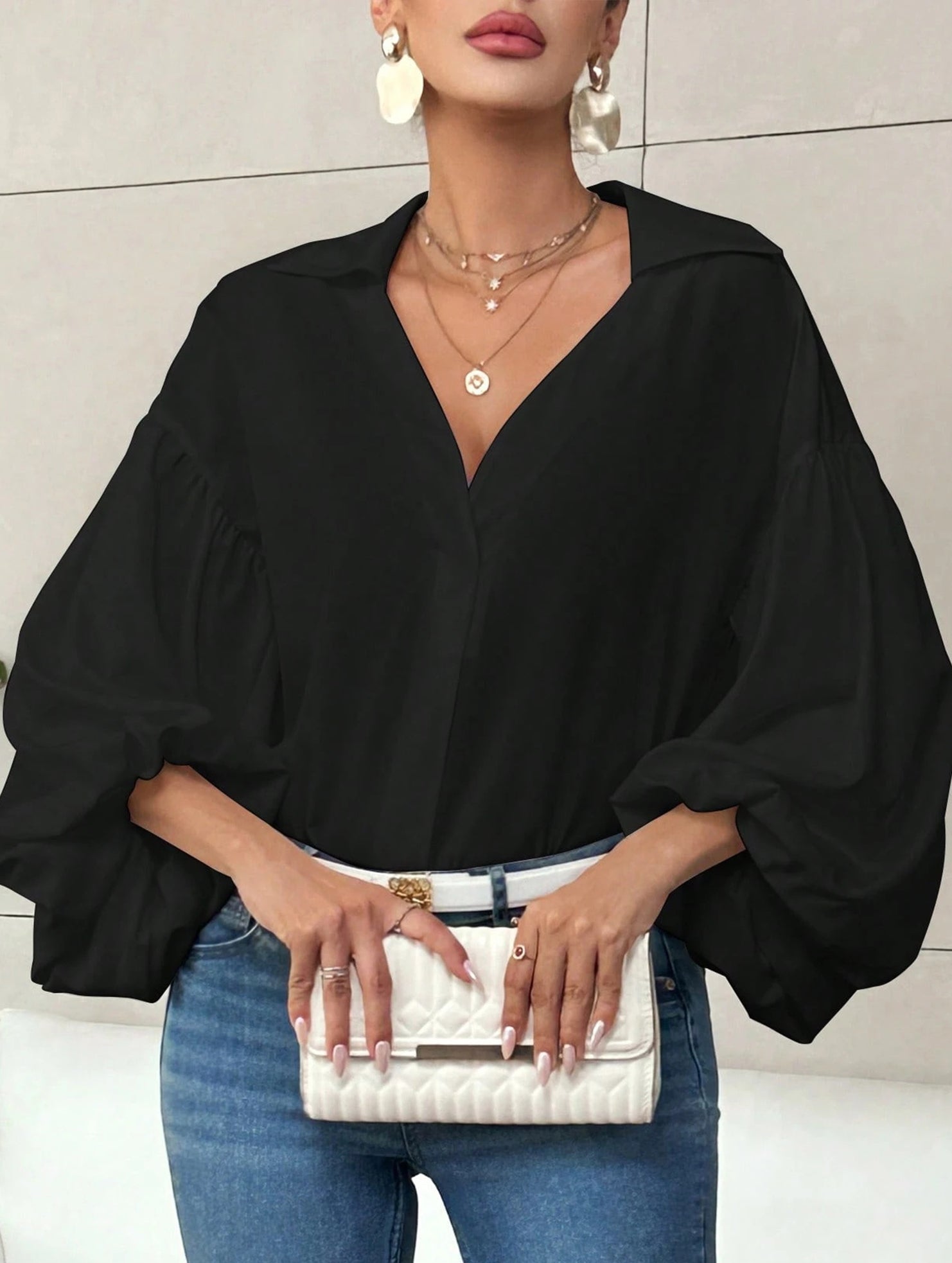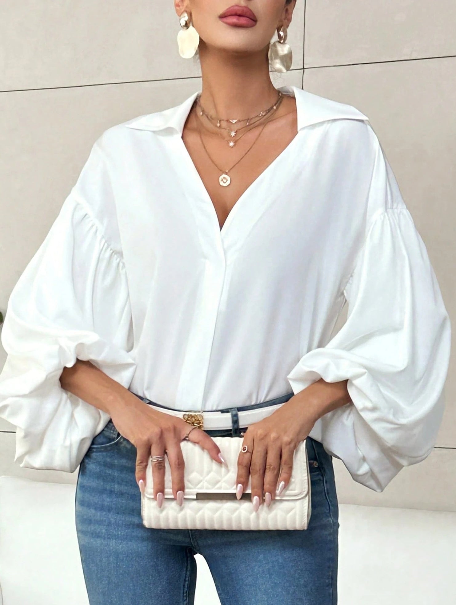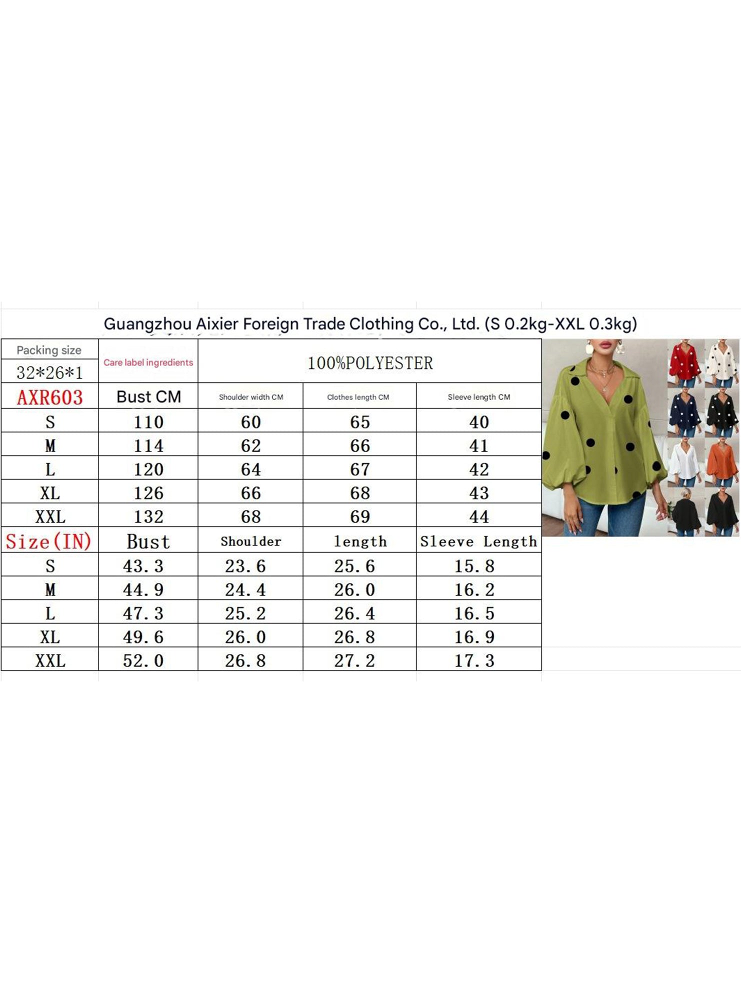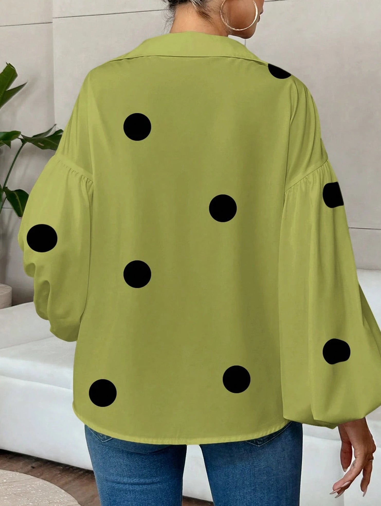 xPolka dot V-neck loose bubble long-sleeved shirt
