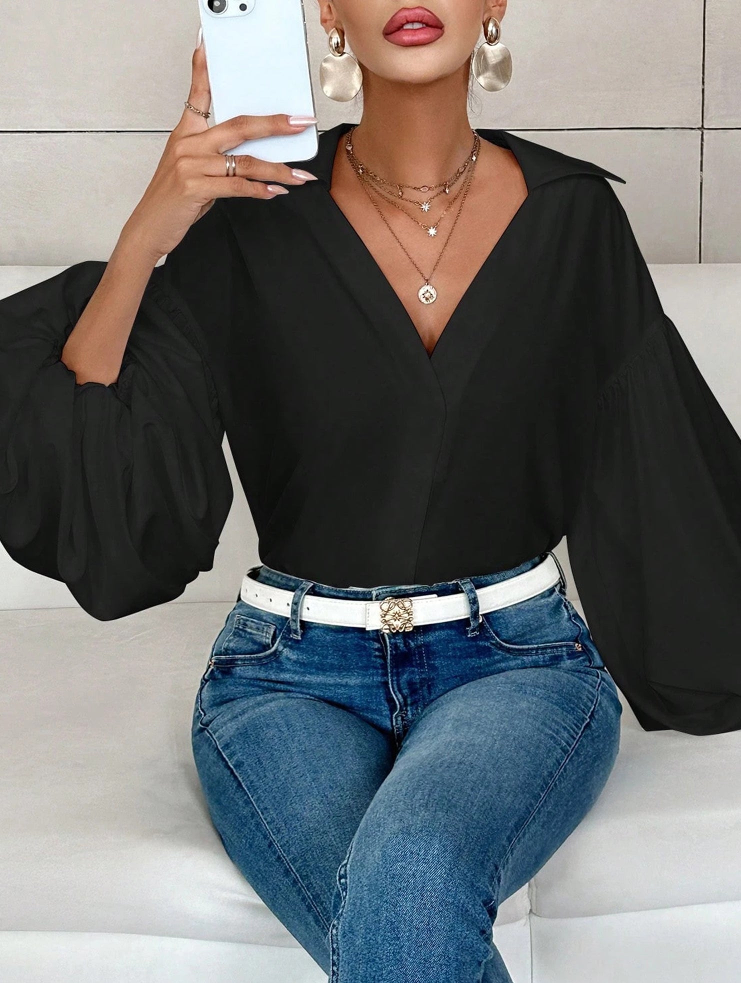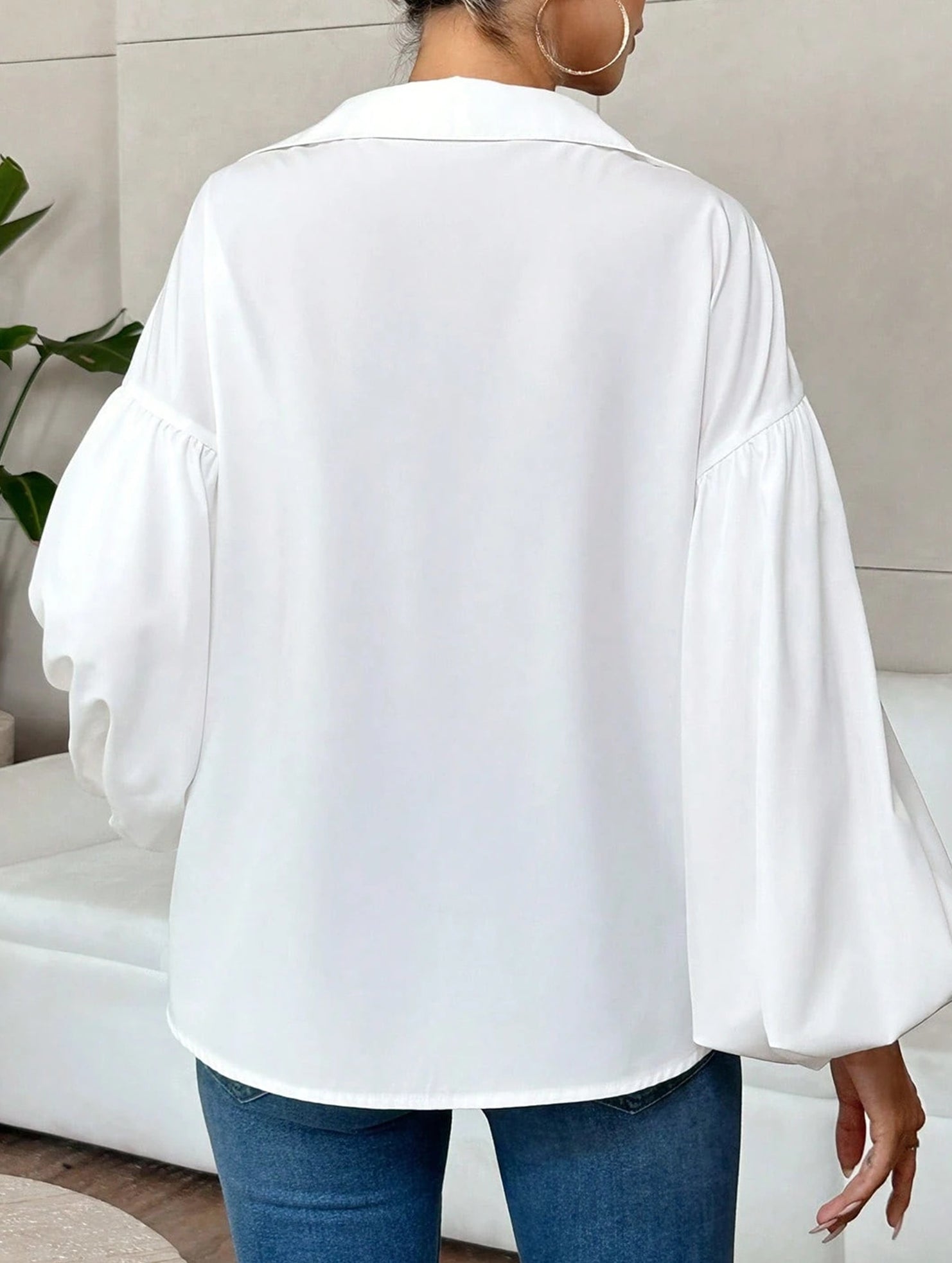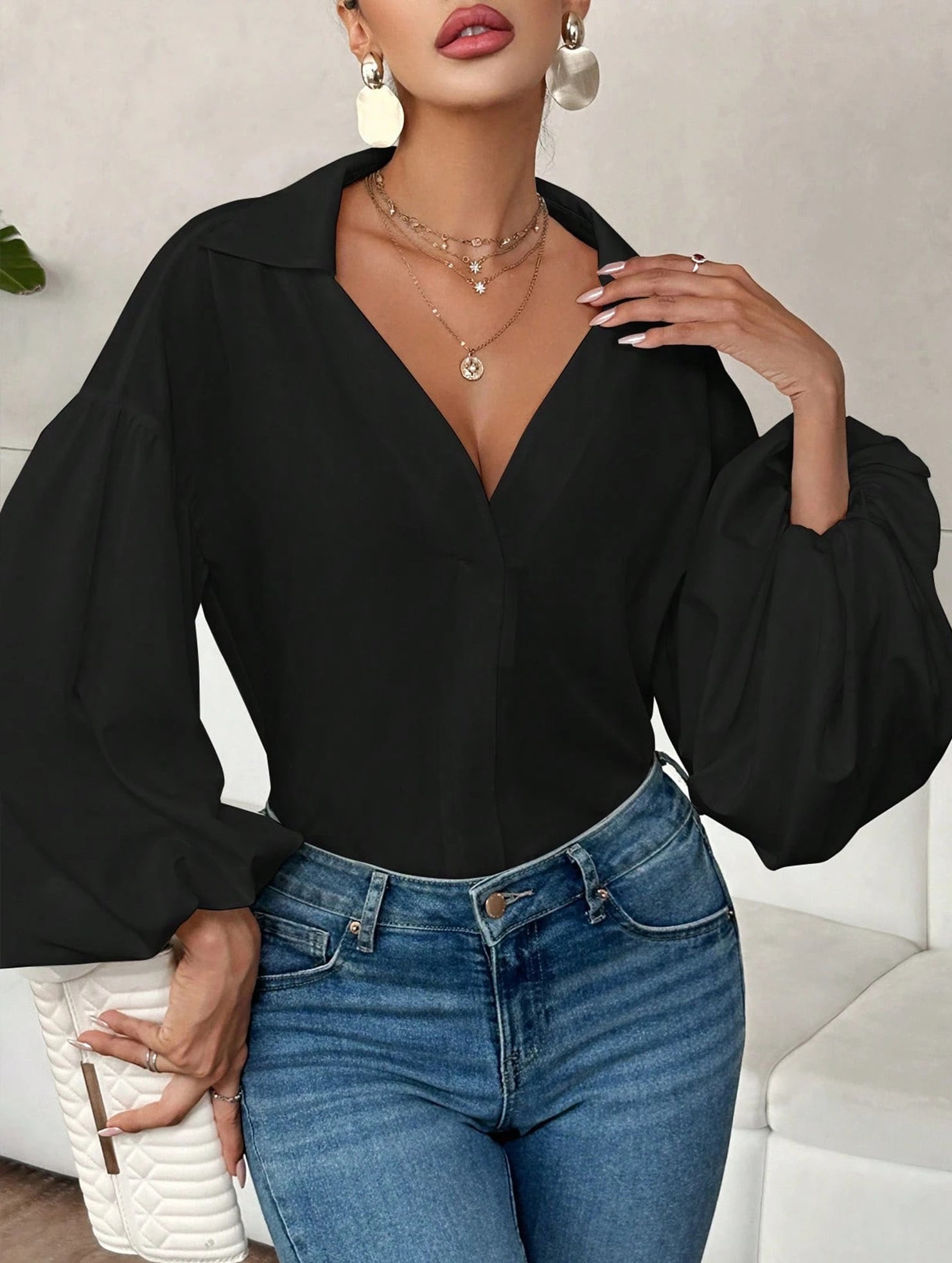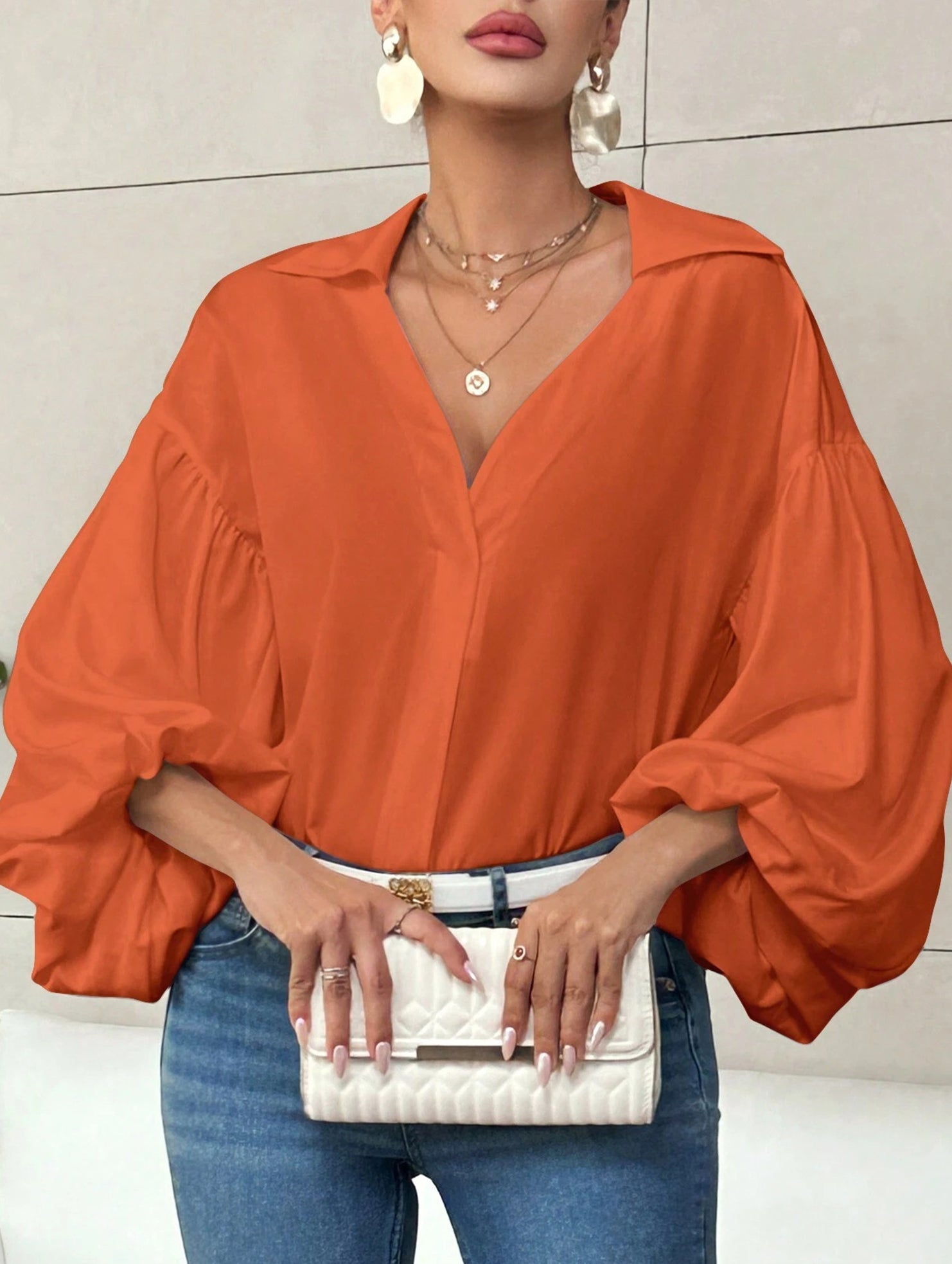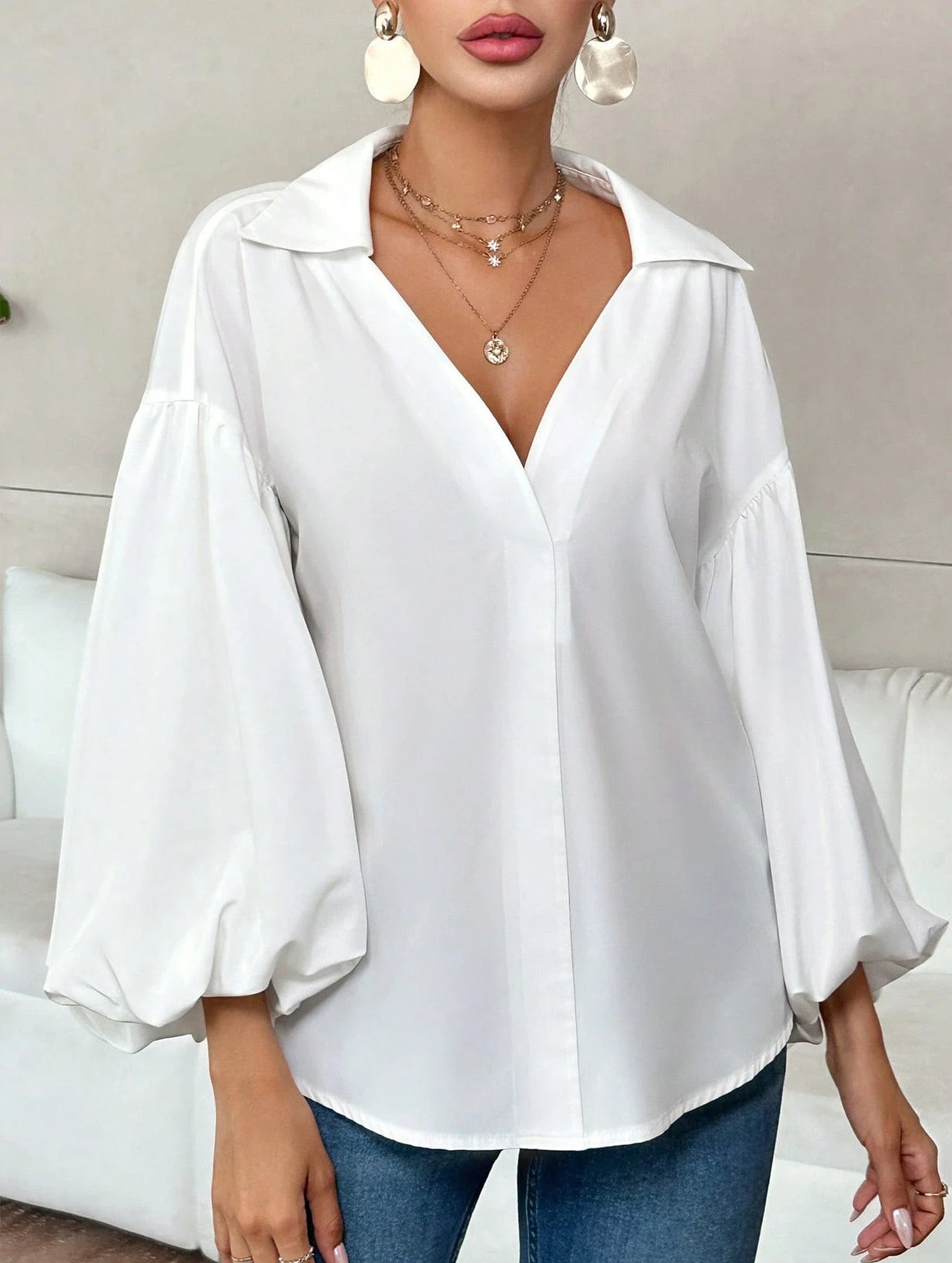 xPolka dot V-neck loose bubble long-sleeved shirt