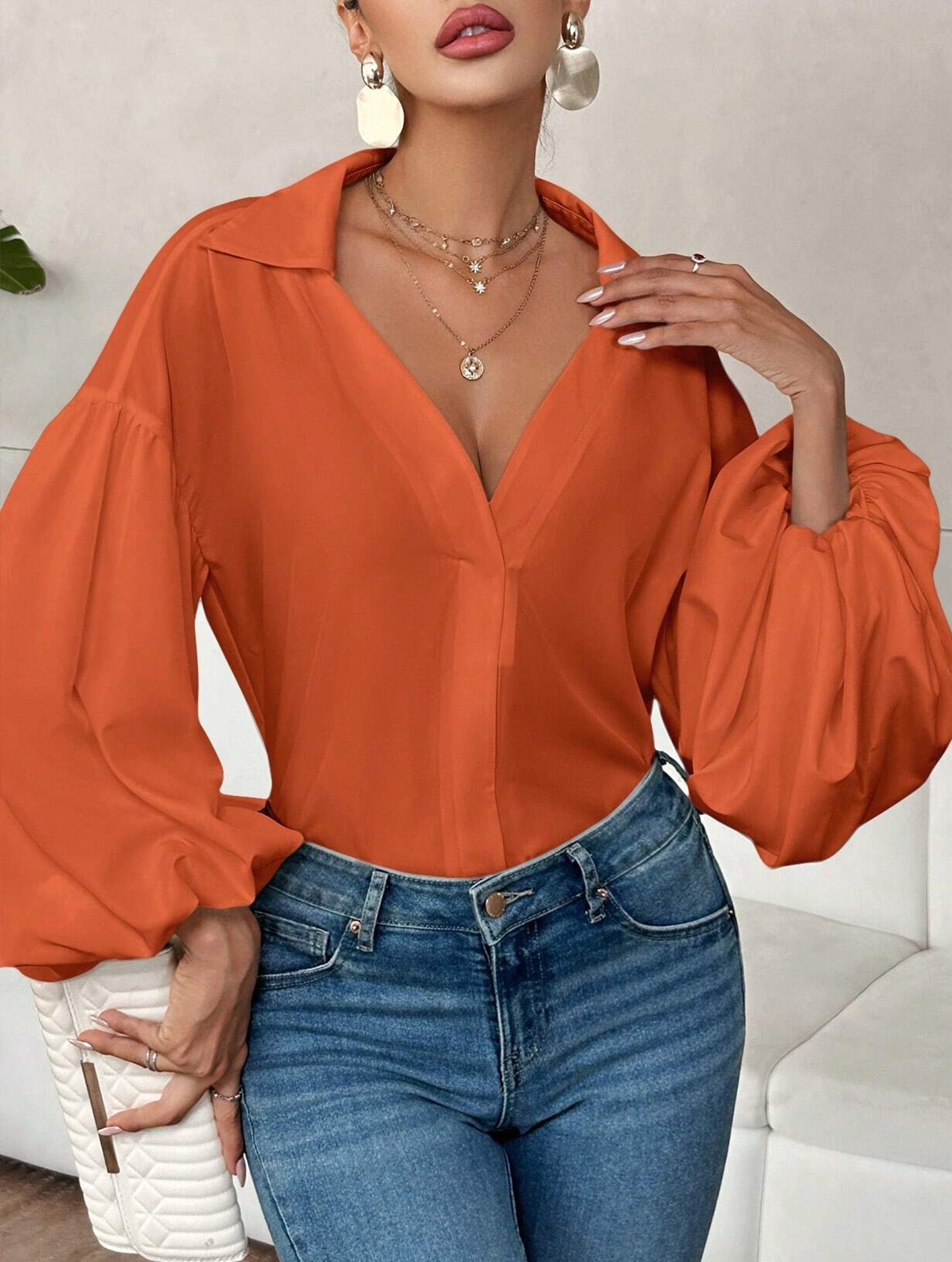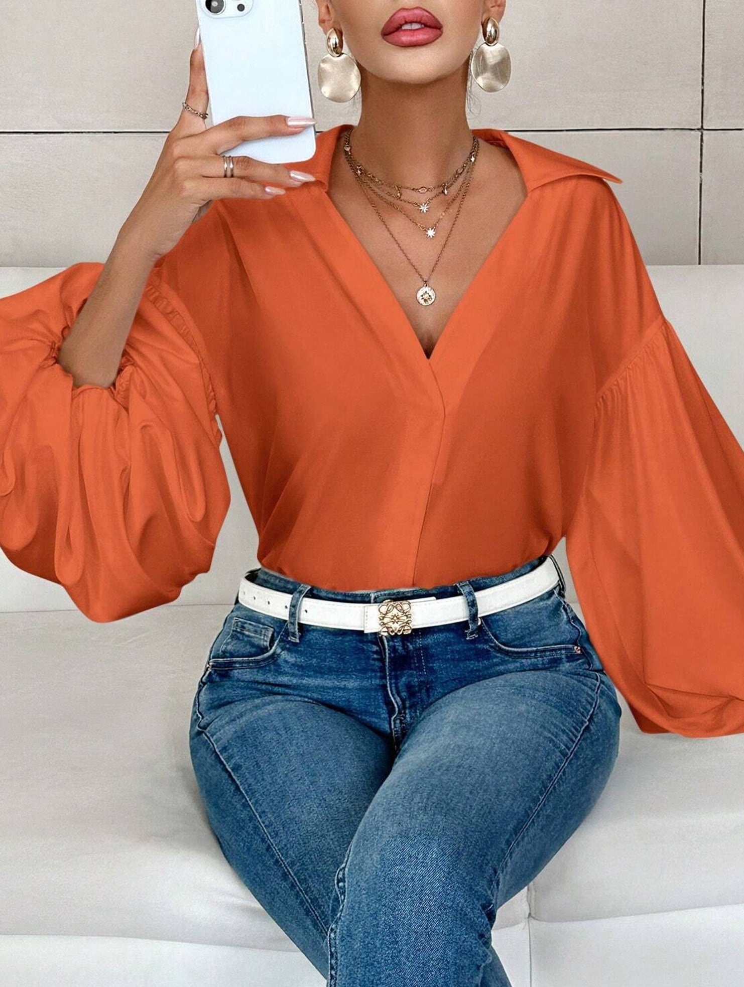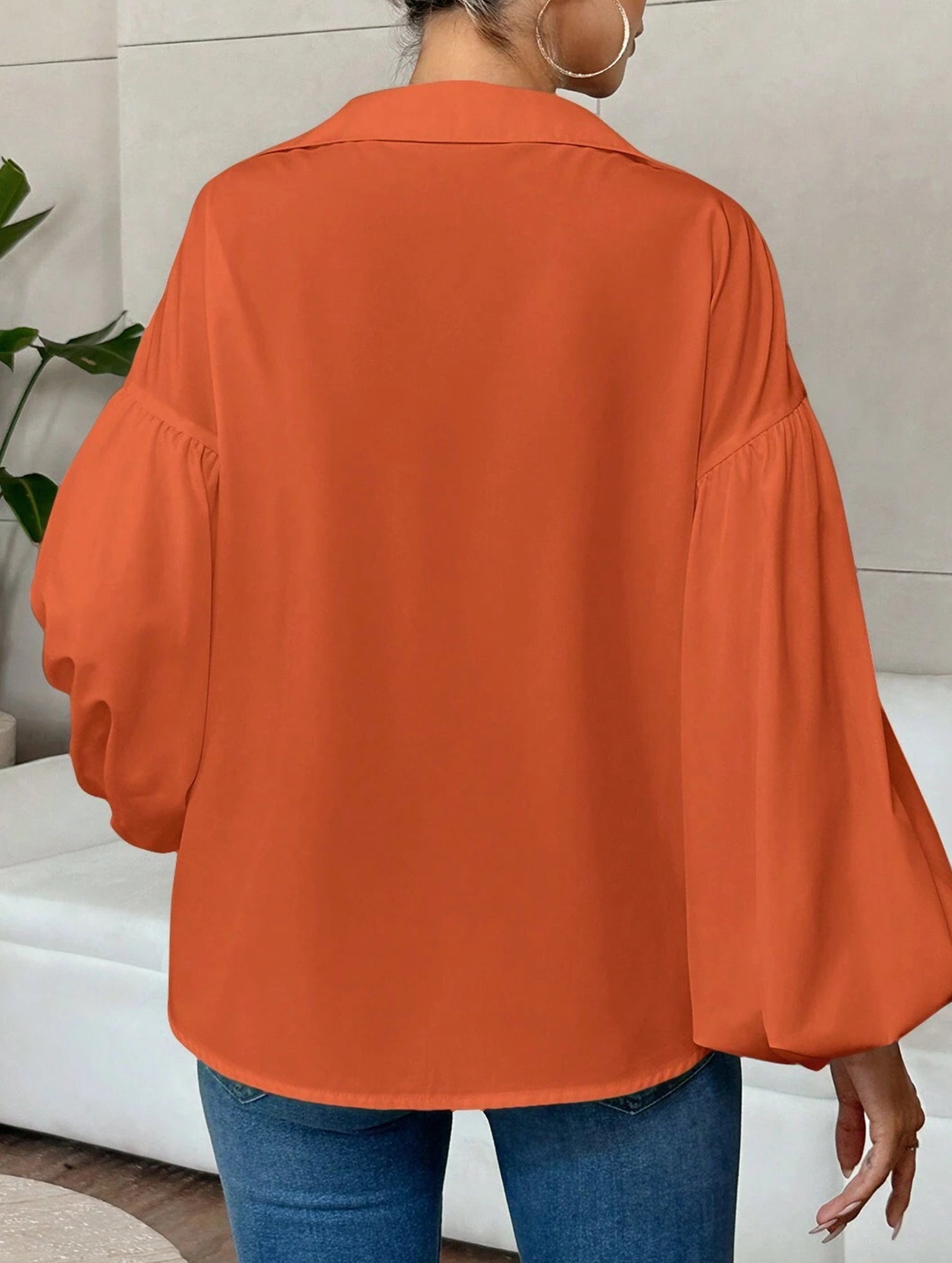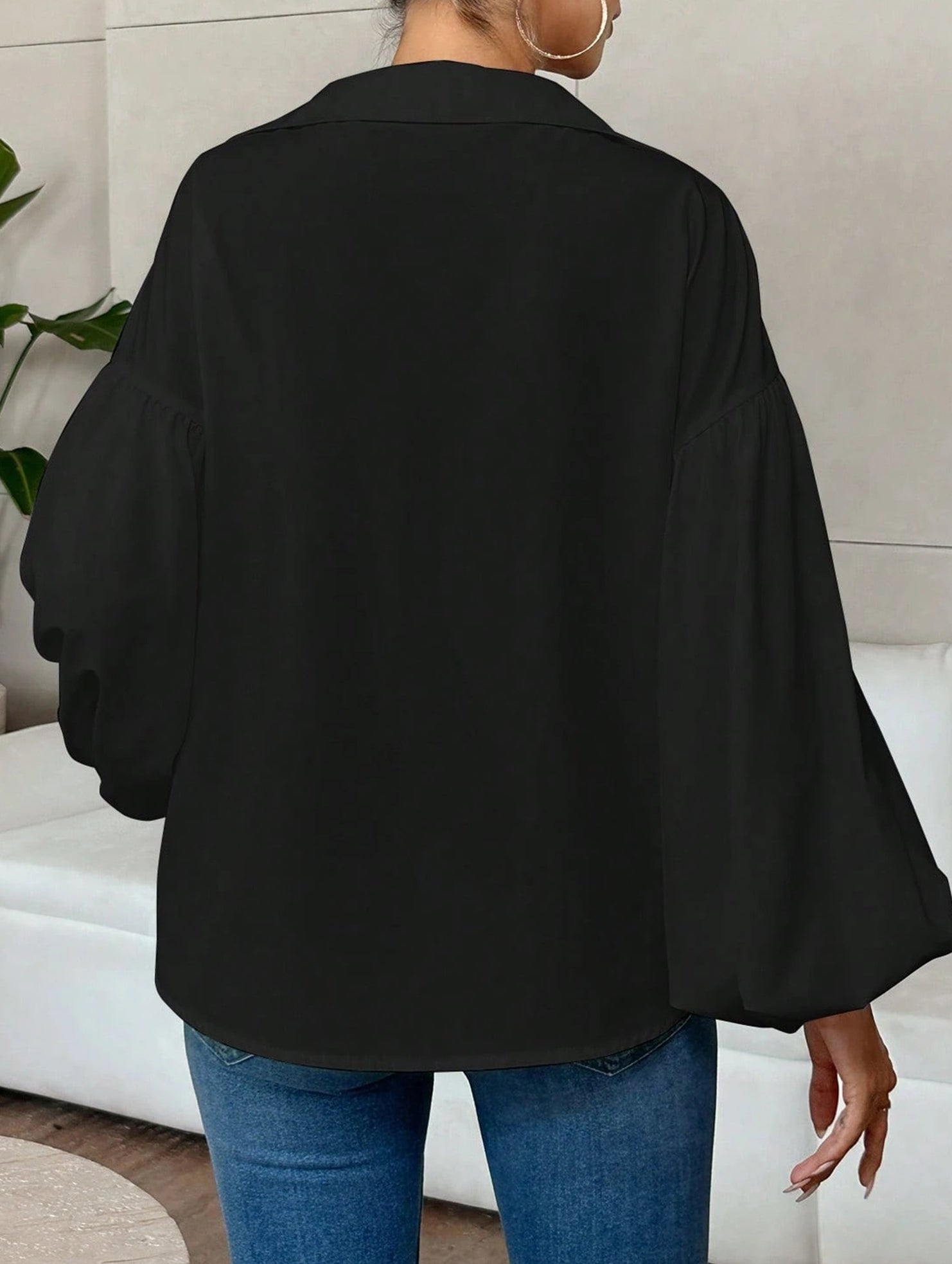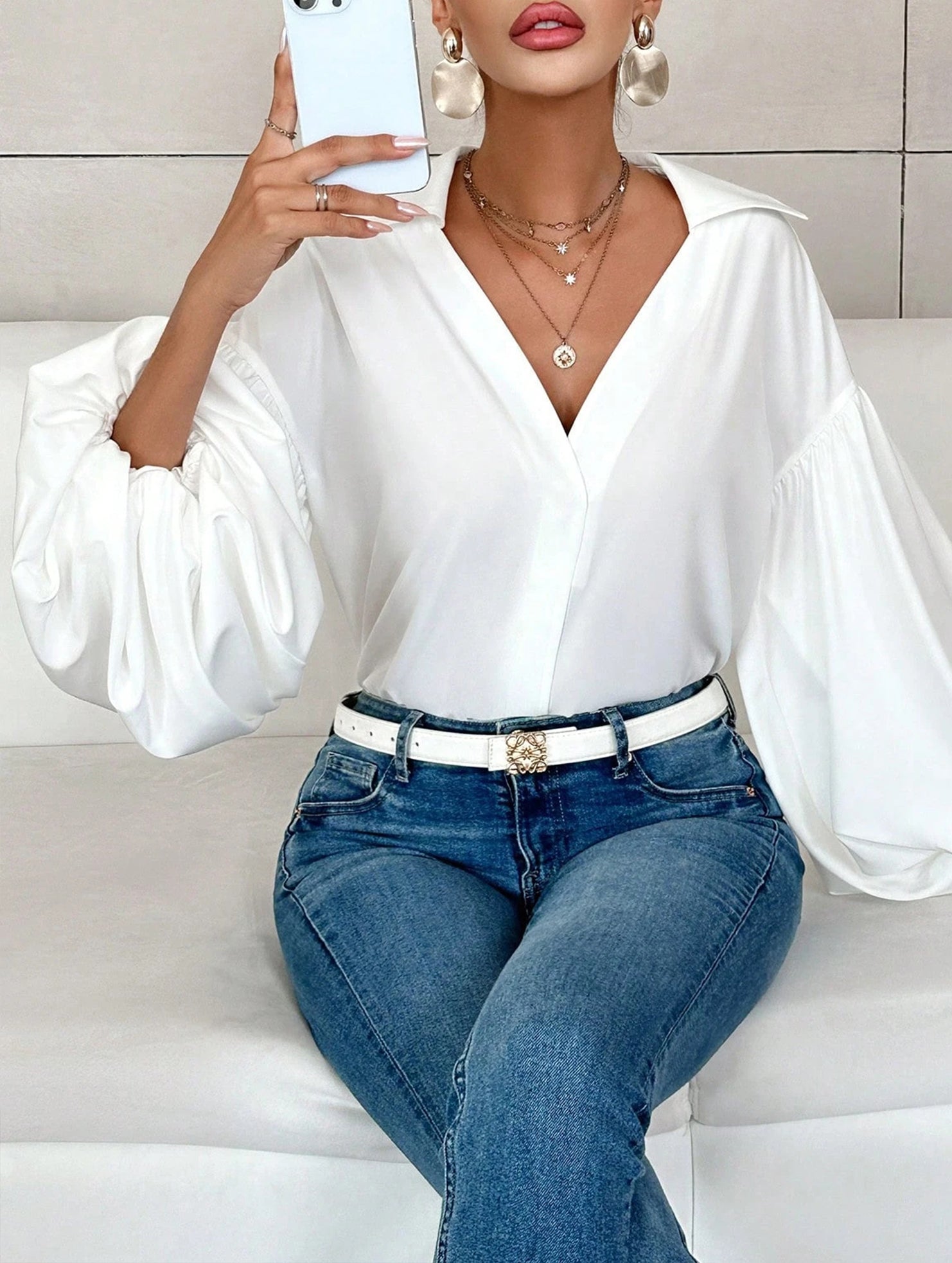 xPolka dot V-neck loose bubble long-sleeved shirt