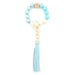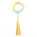 PRINTED WOOD BEAD BRACELET KEYCHAIN WITH TASSEL_CWMM7025