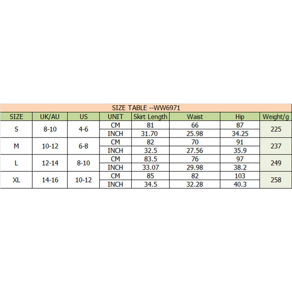 Description & Size Chart