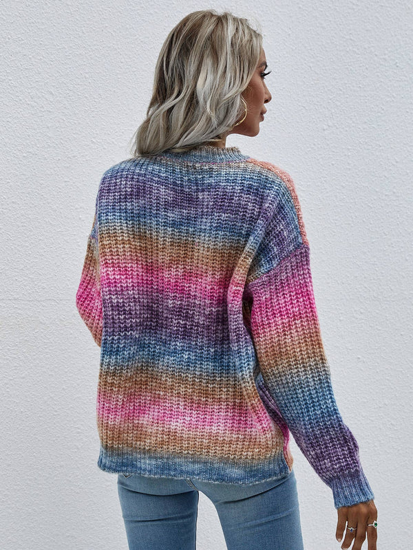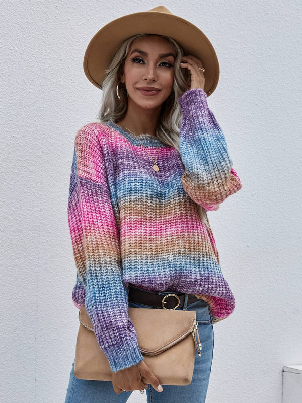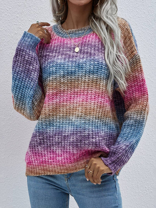Pullover Striped Crew Neck Loose Rainbow Sweater