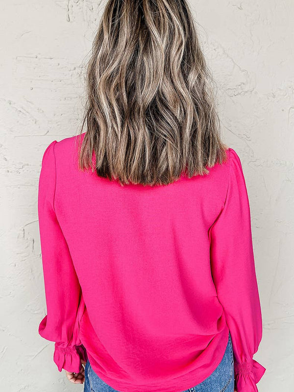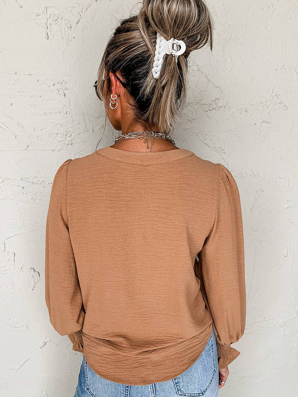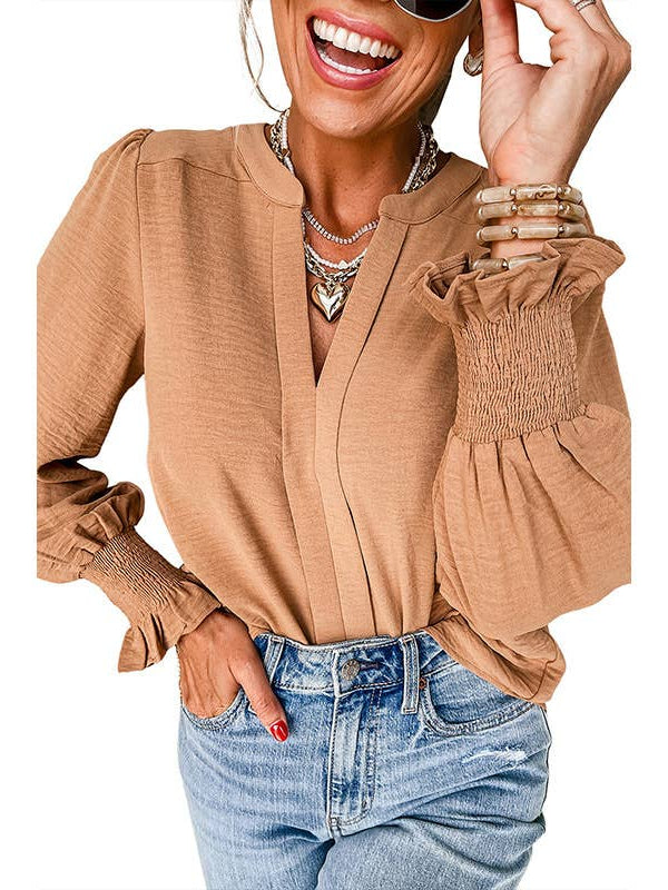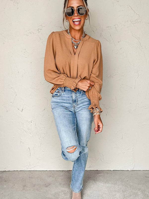 Pullover V-Neck Long-Sleeved Casual Ruffled Shirt