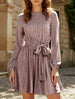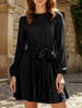 xPure color velvet long-sleeved dress