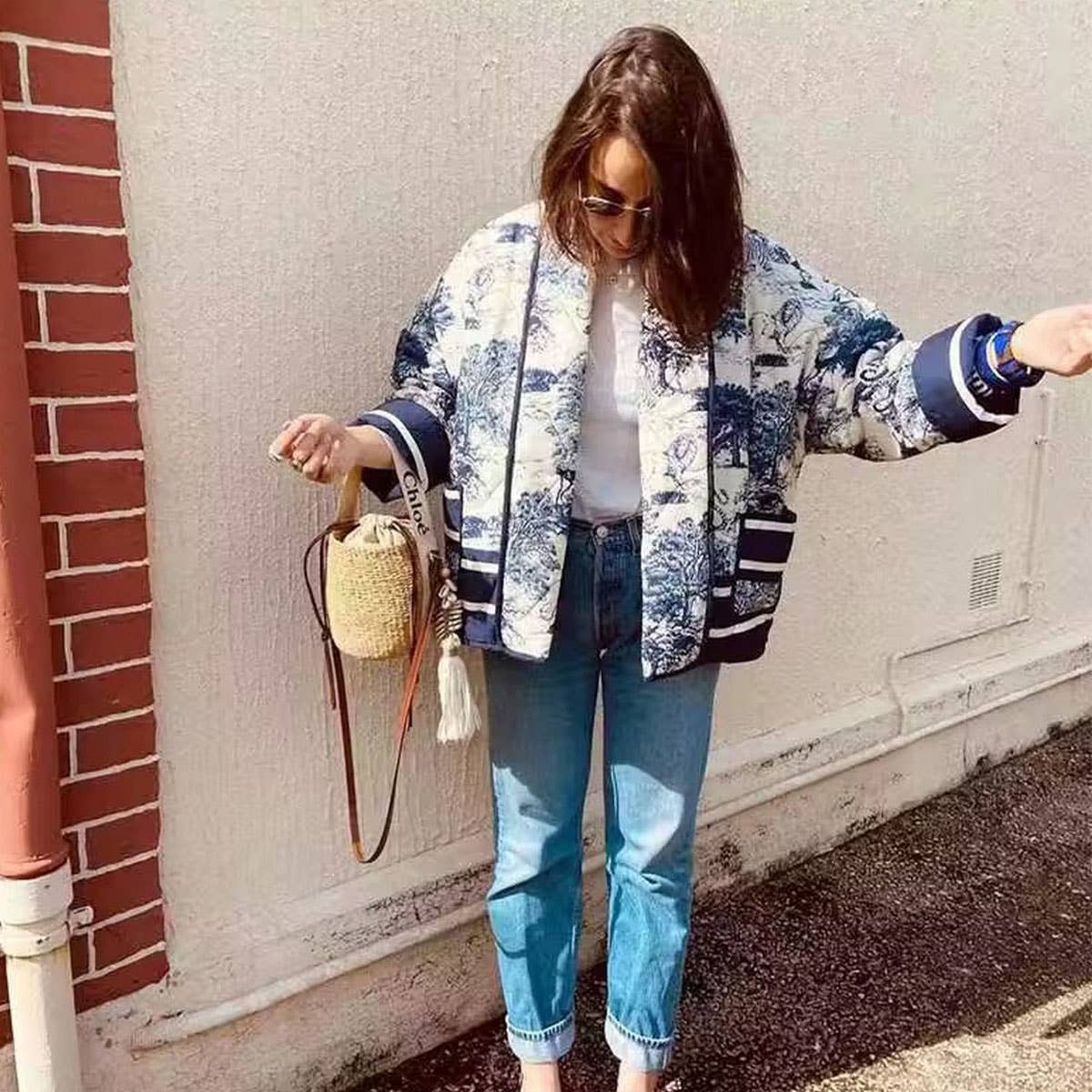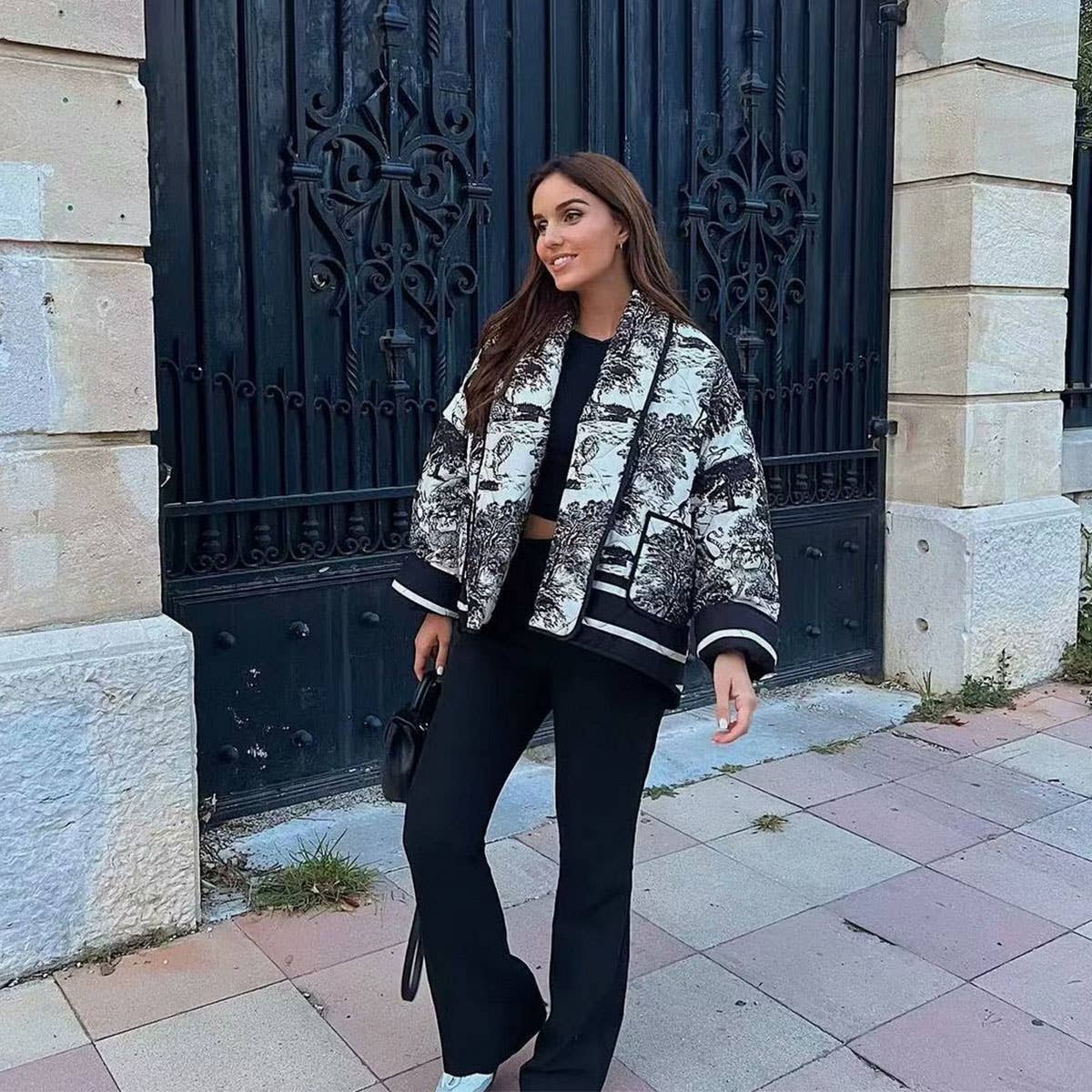 Discover the Quilted Jacket With Floral Print Lapel, a piece designed to blend style and everyday comfort.