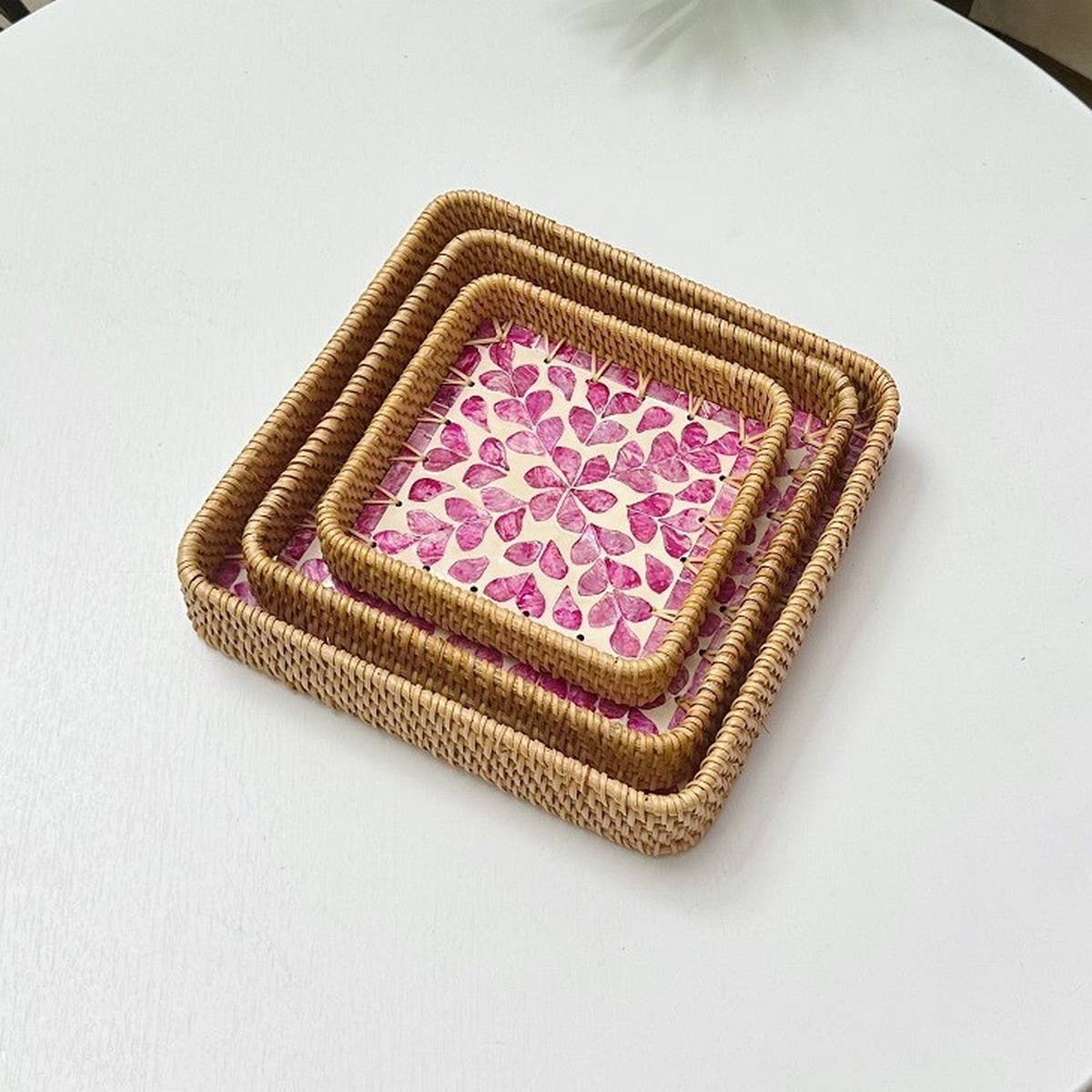 The Rattan Colorful Shell Fruit Tray Three Piece Set adds a refined touch with its clean and modern silhouette.