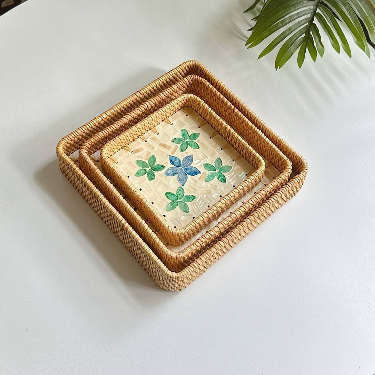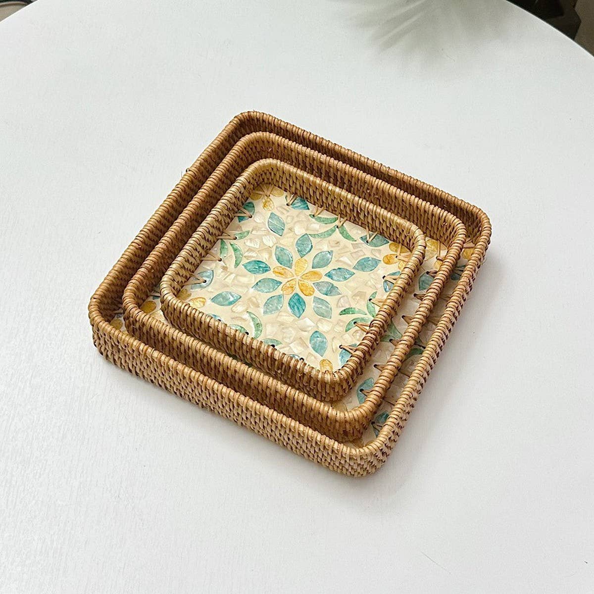 Experience versatile styling with the Rattan Colorful Shell Fruit Tray Three Piece Set, crafted to adapt effortlessly.