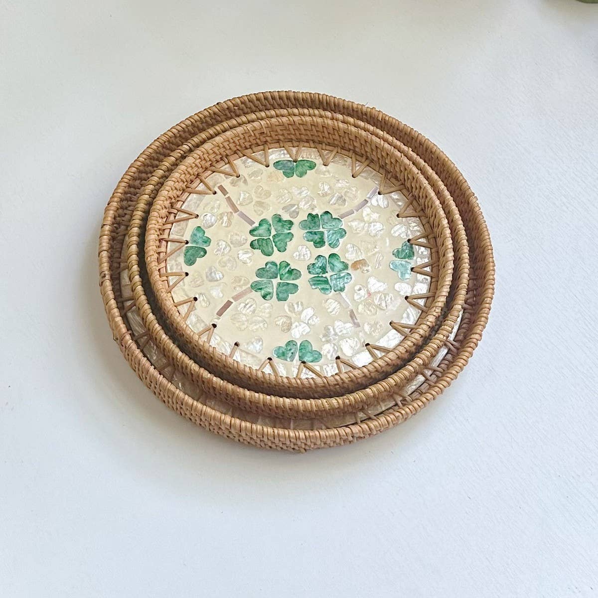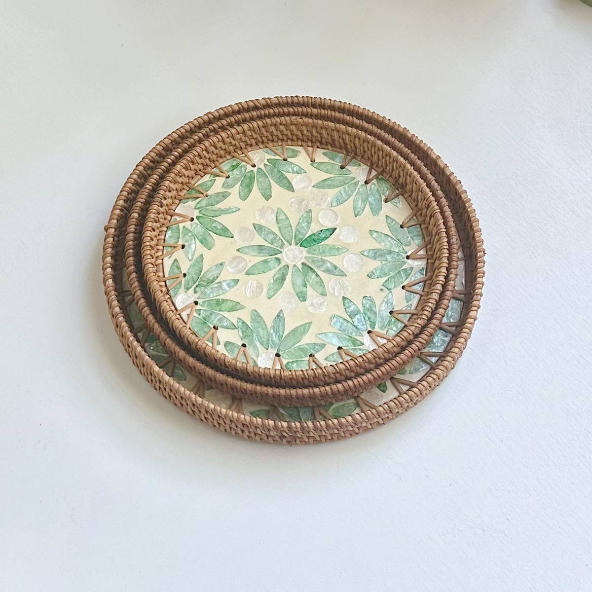 Experience versatile styling with the Rattan Colorful Shell Fruit Tray Three Piece Set, crafted to adapt effortlessly.