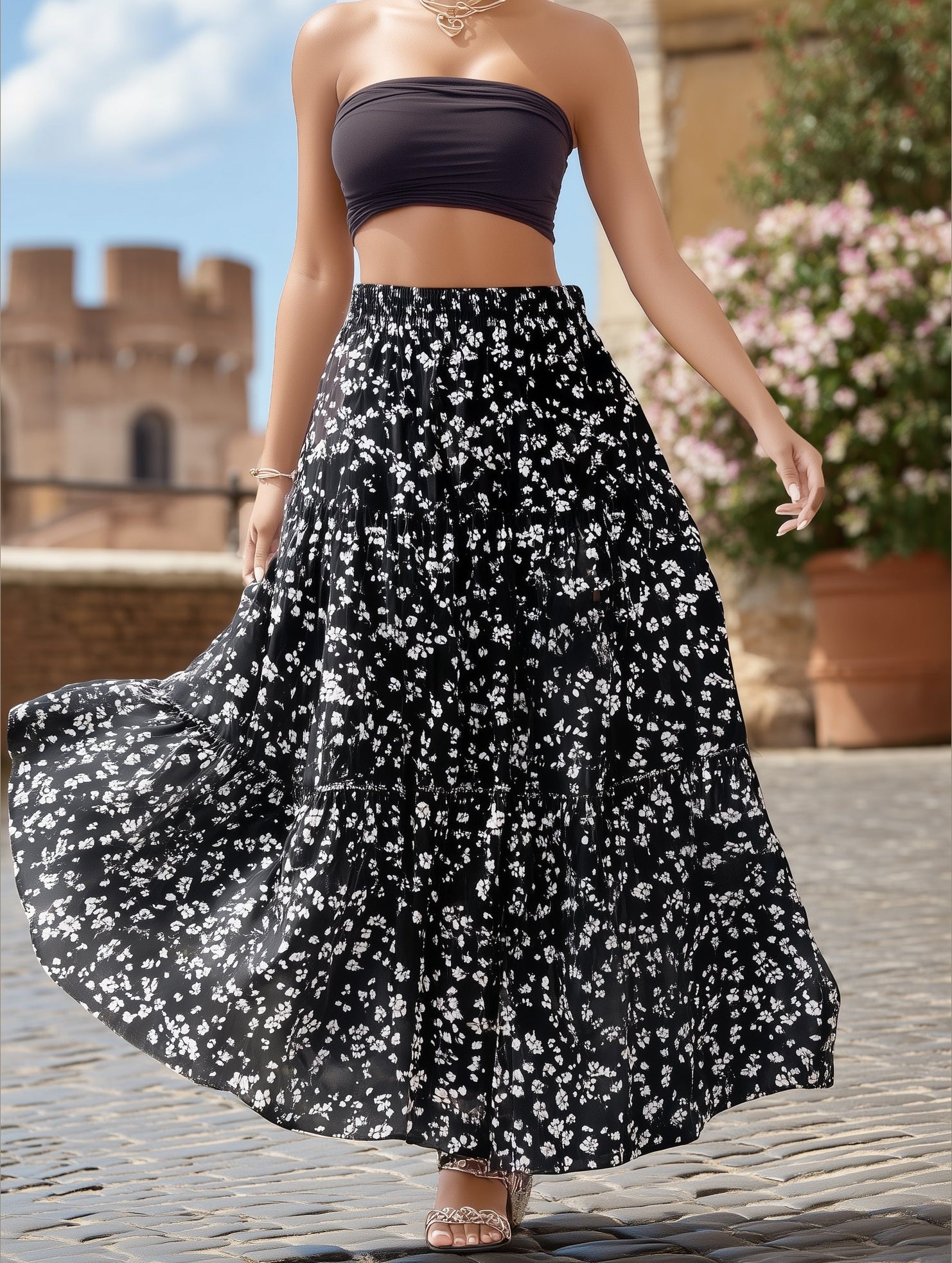 Floral Panel Maxi A-Line Skirt ??Boho Chic Flow