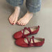 A polished essential, the Red Cross Strap Mary Jane Flats For Women transitions seamlessly from casual to elevated looks.