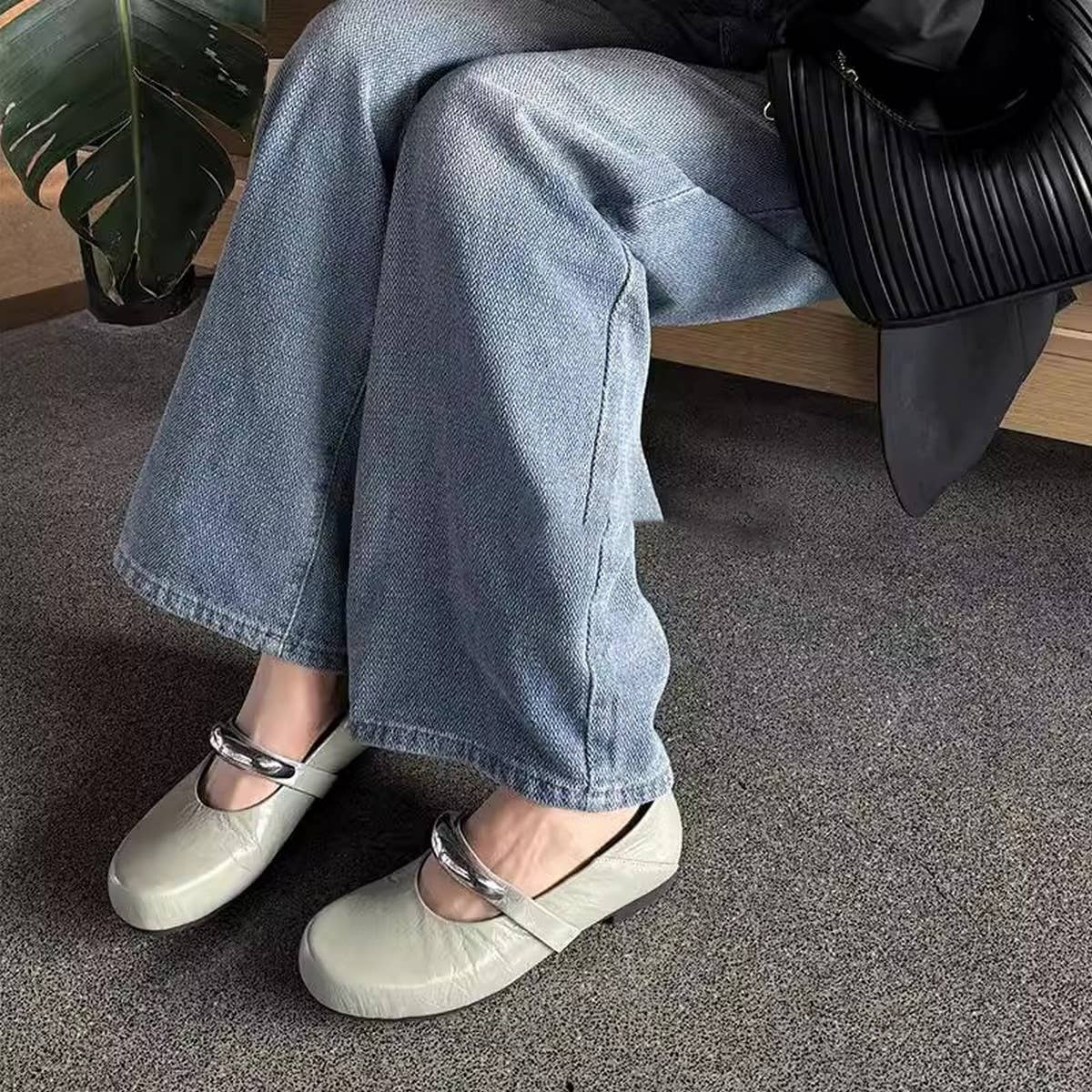 The Red Leather Mary Janes Flat Ballet Shoes brings a fresh balance of structure and ease into your wardrobe.