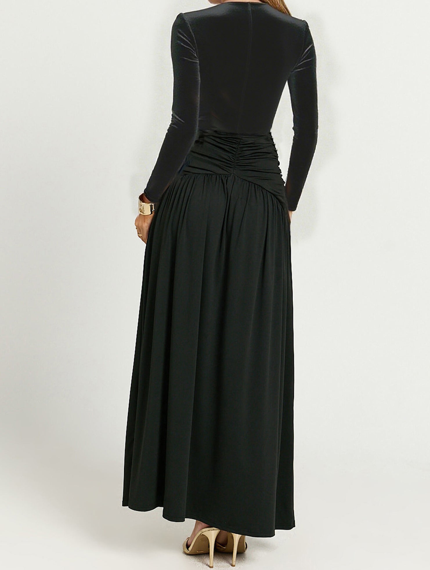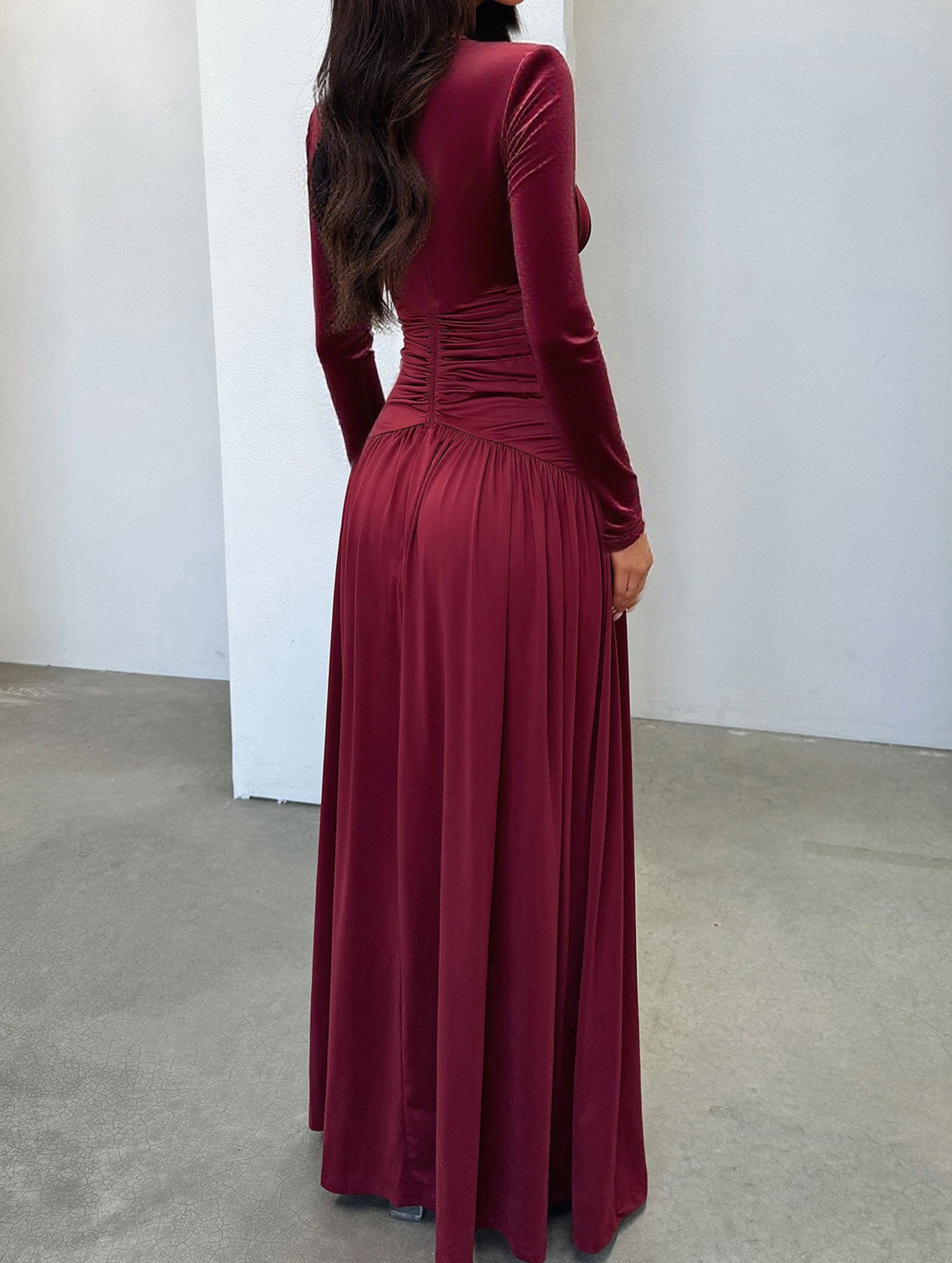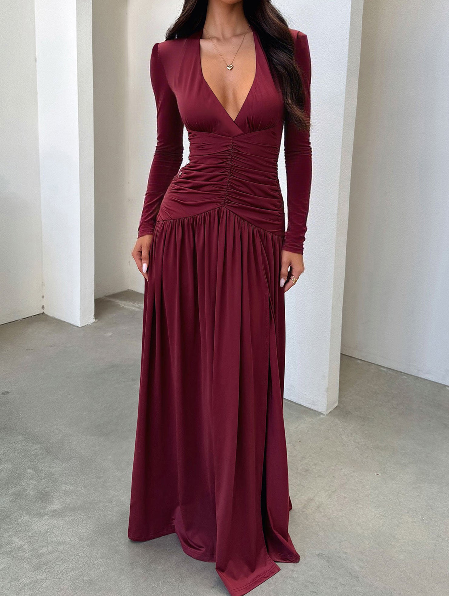 xRetro deep V long sleeve maxi dress