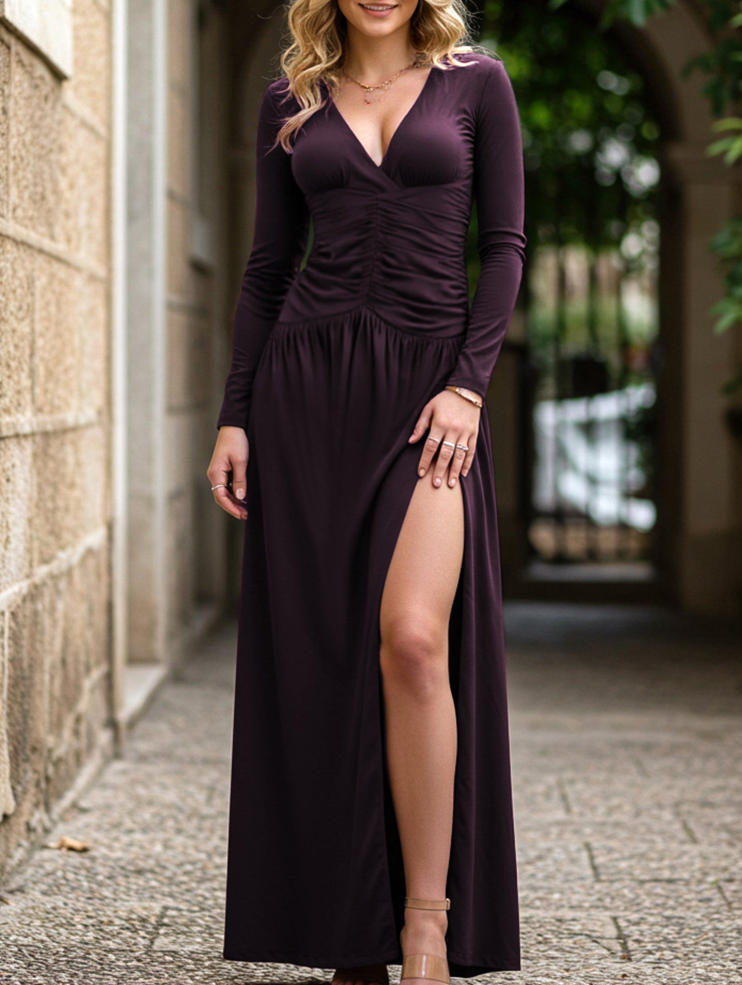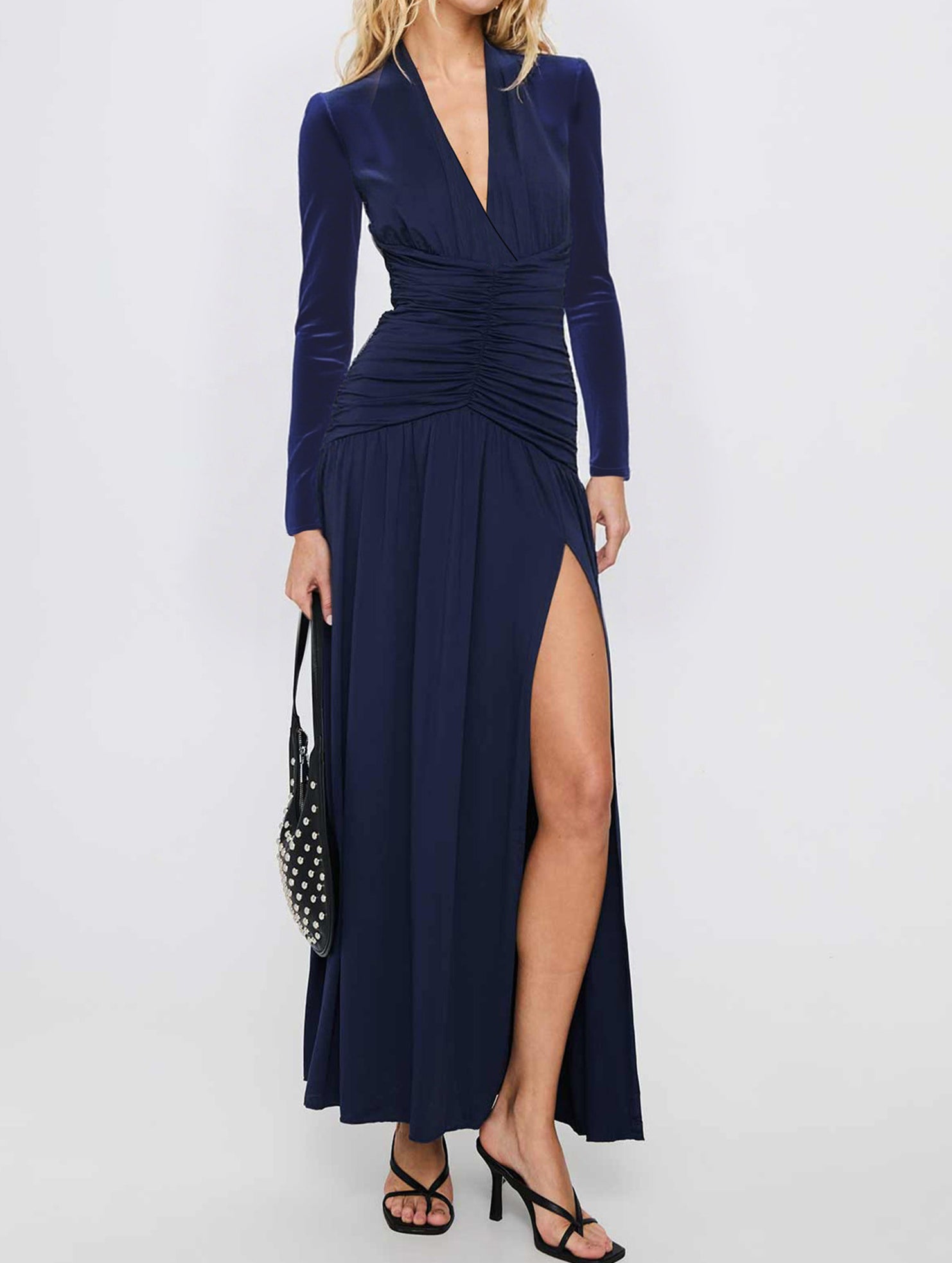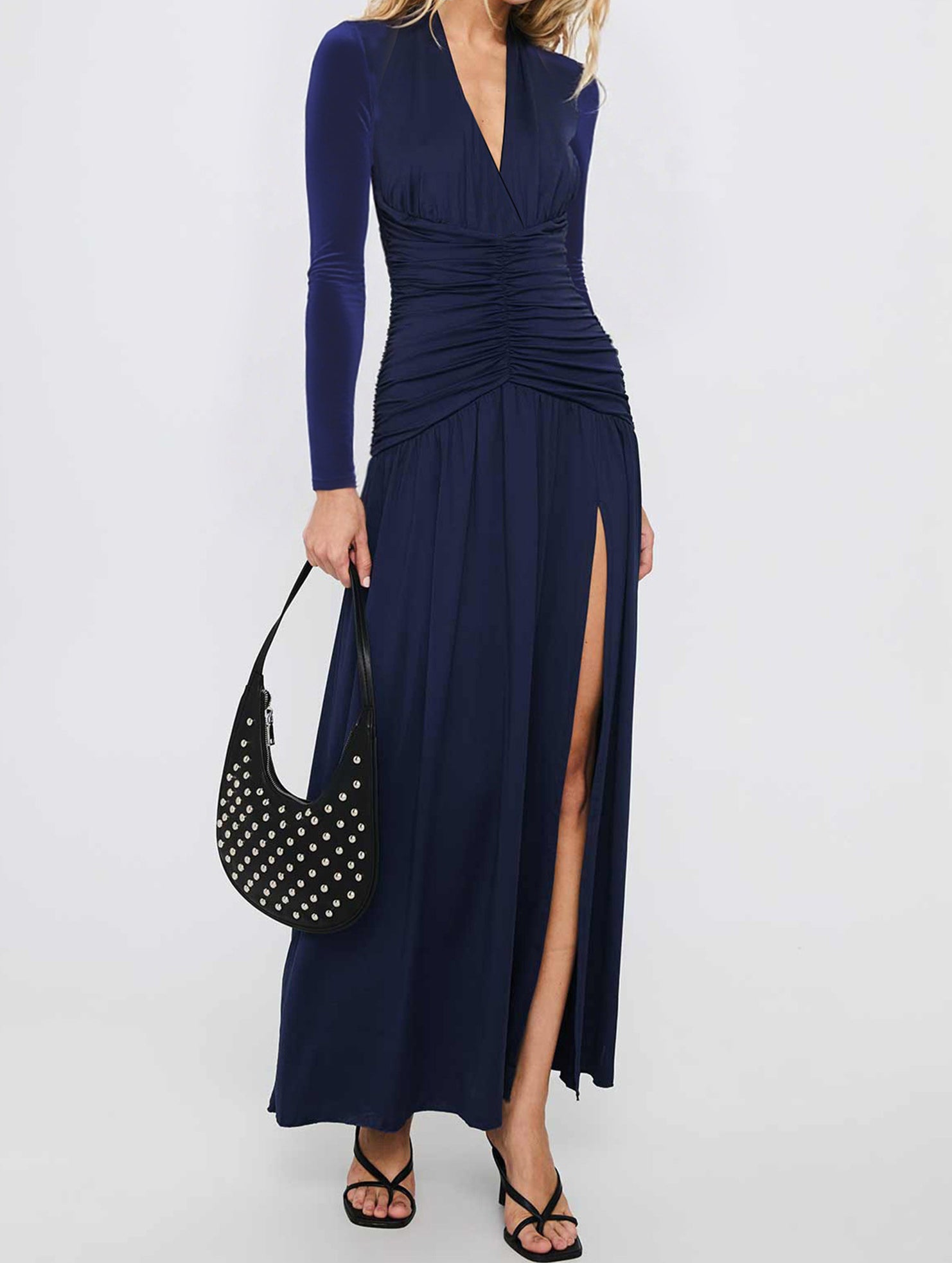 xRetro deep V long sleeve maxi dress