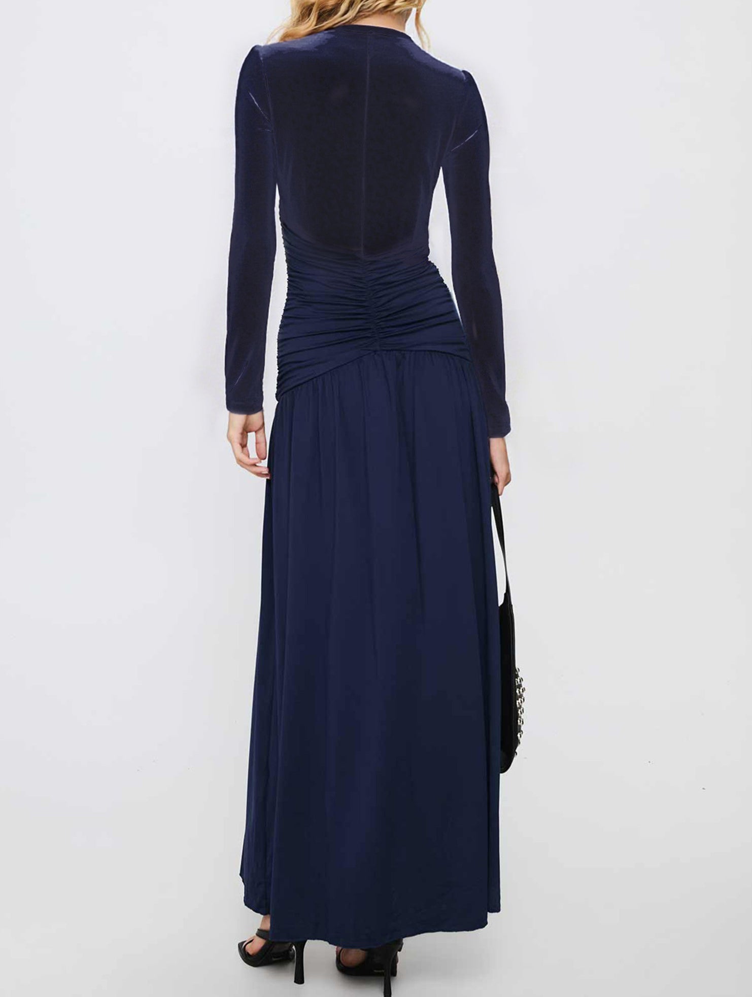 Retro deep V long sleeve maxi dress