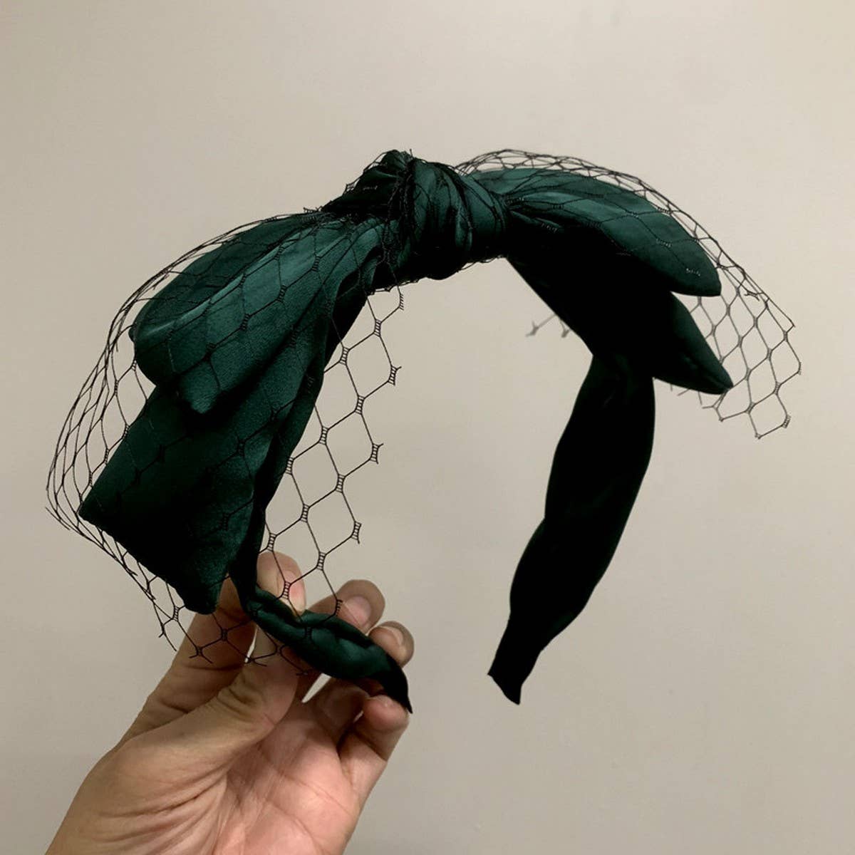 RETRO FISHNET DOUBLE LAYER BIG BOW HEADBAND_CWAHA2563