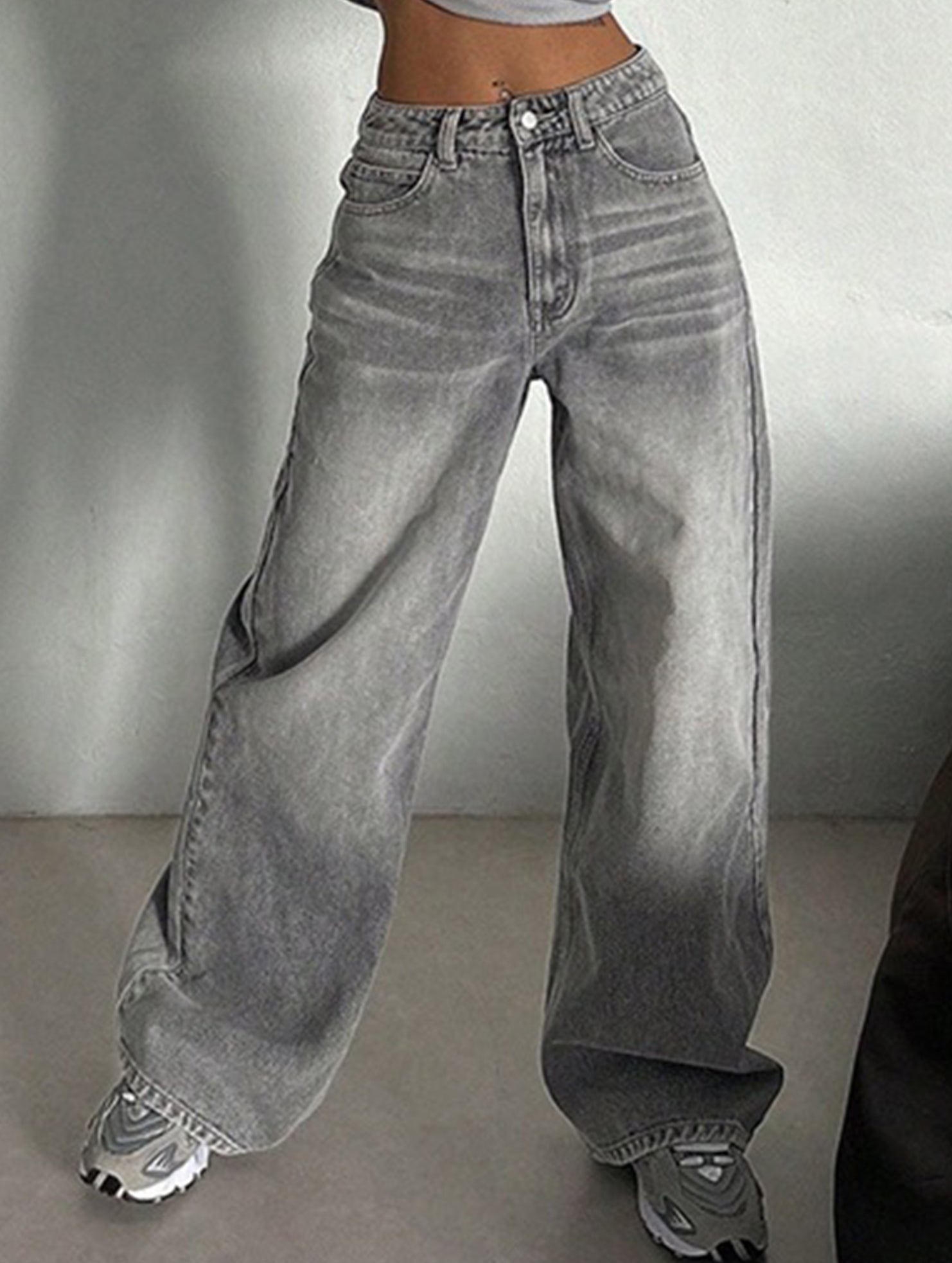 Retro high waist loose wide leg pants