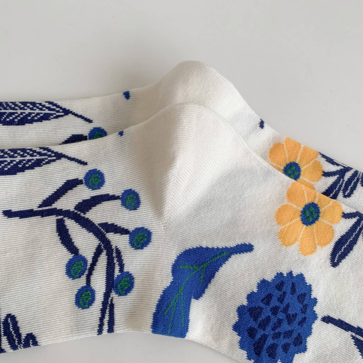 RETRO NICHE DESIGN PRINTED FLOWER SOCKS_CWMS0957