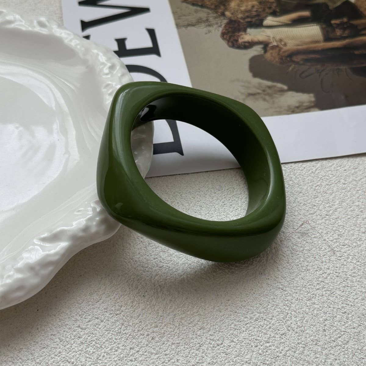 Use accessories in black, green, white tones to unify the palette.