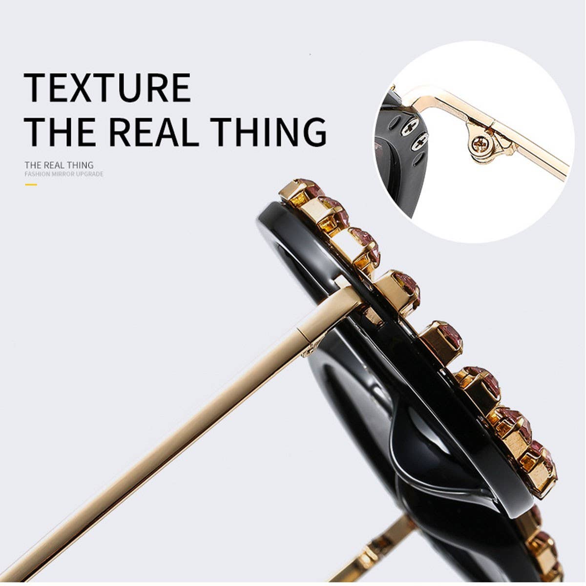 The Retro Round Frame Rhinestone Metal Rivet Glasses adds a refined touch with its clean and modern silhouette.