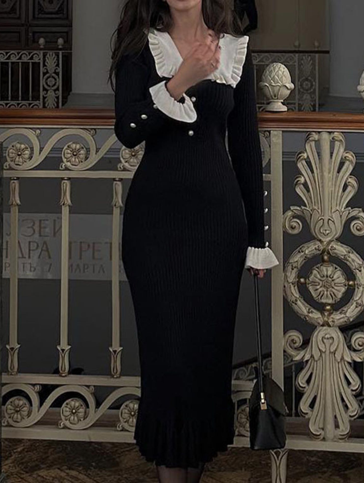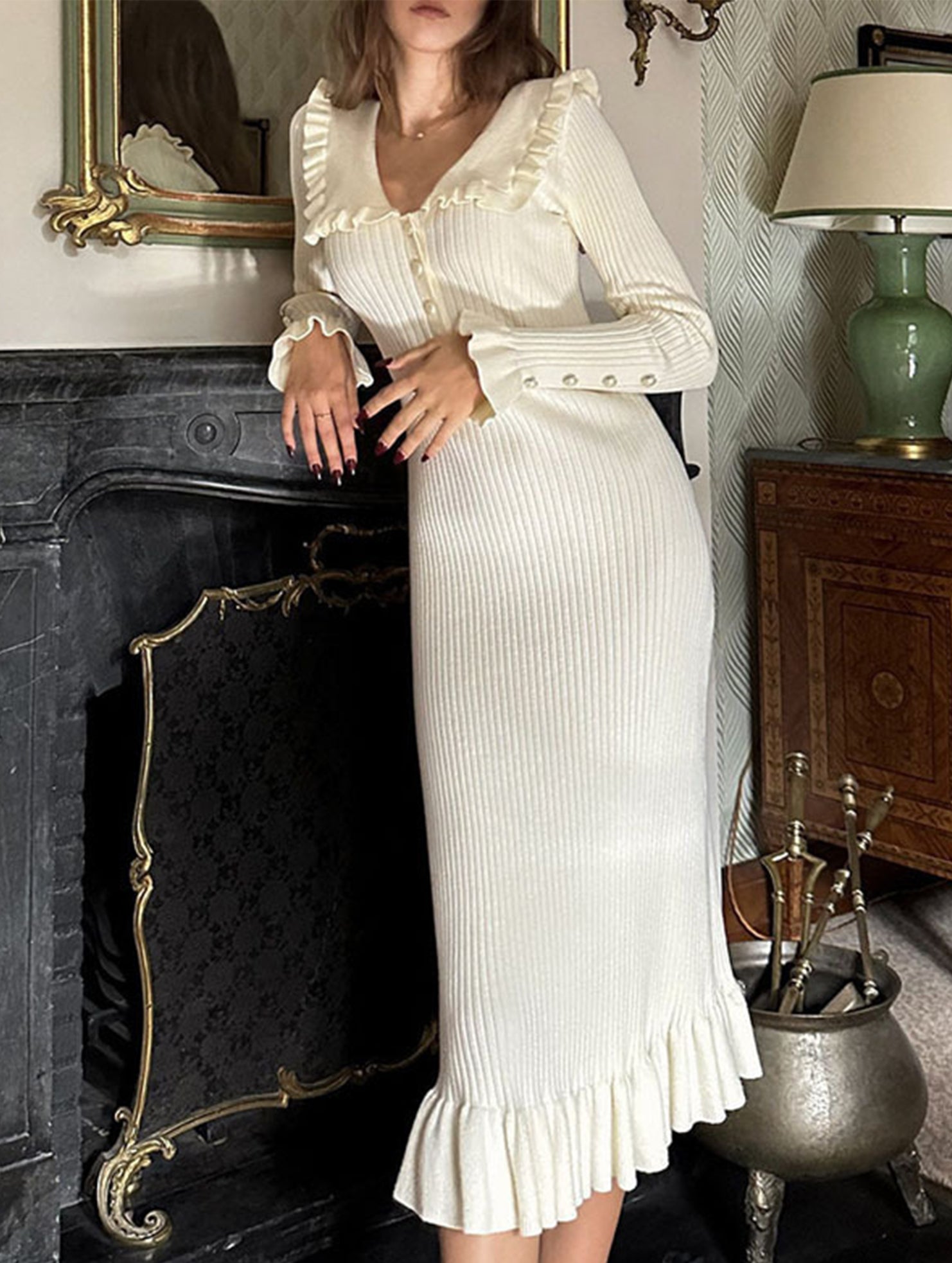 Retro ruffled knit dress