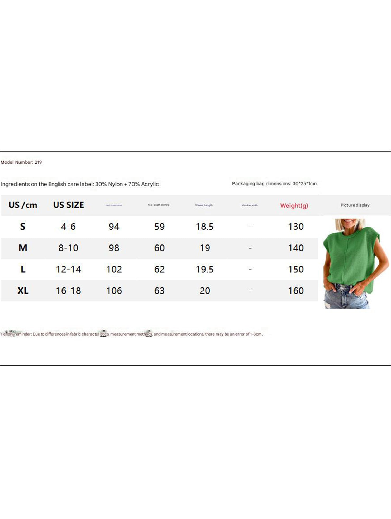 Description & Size Chart