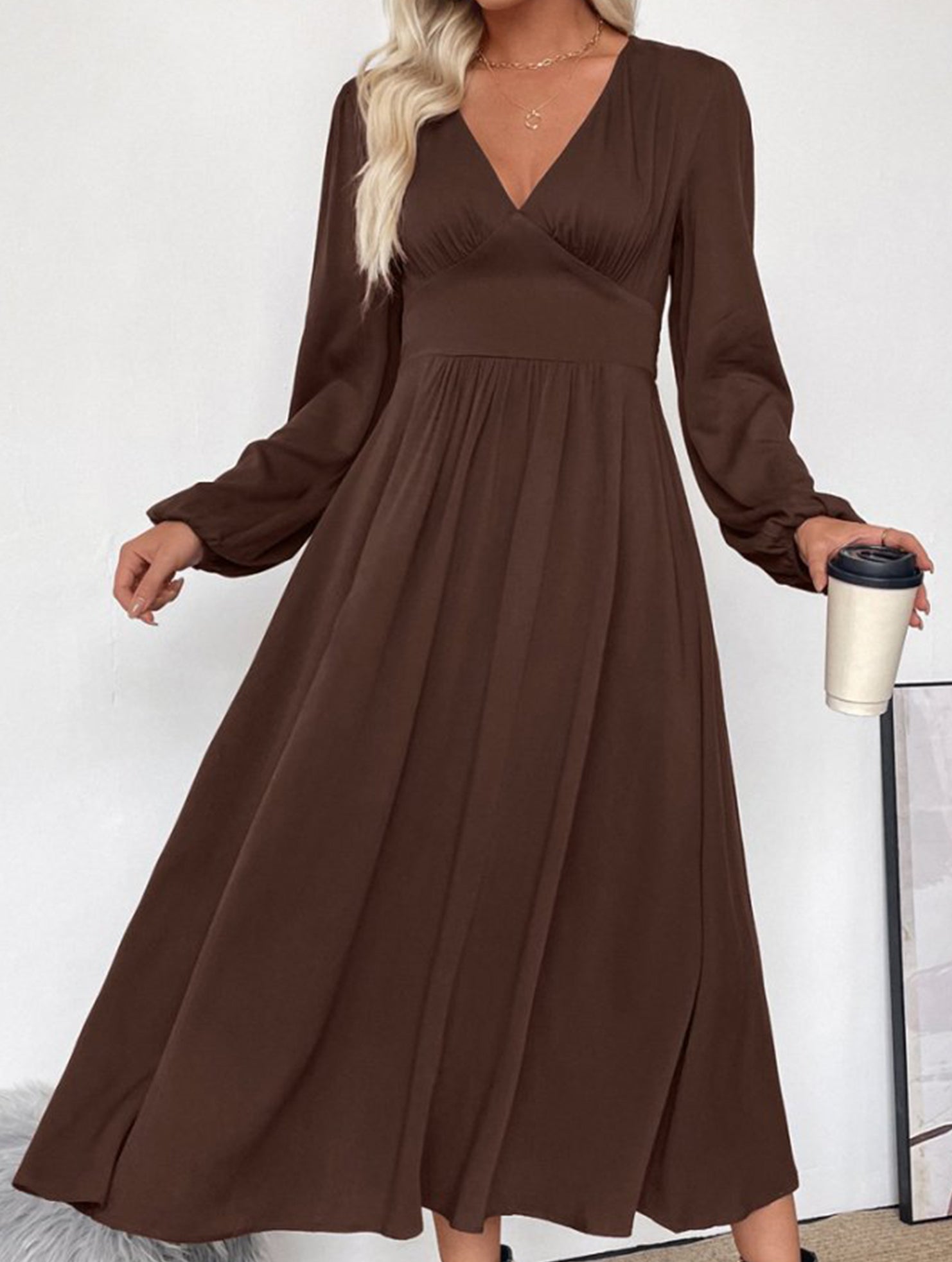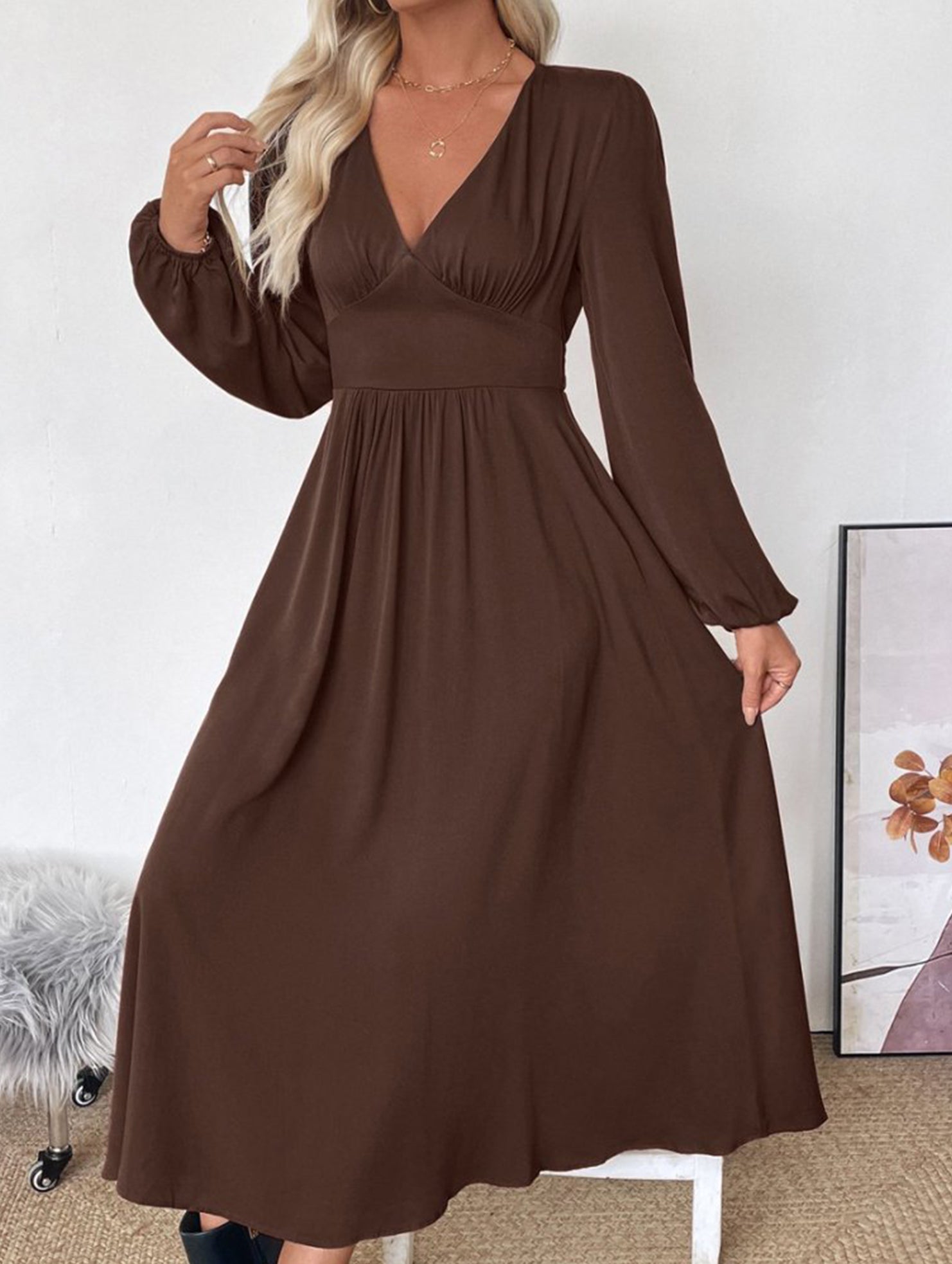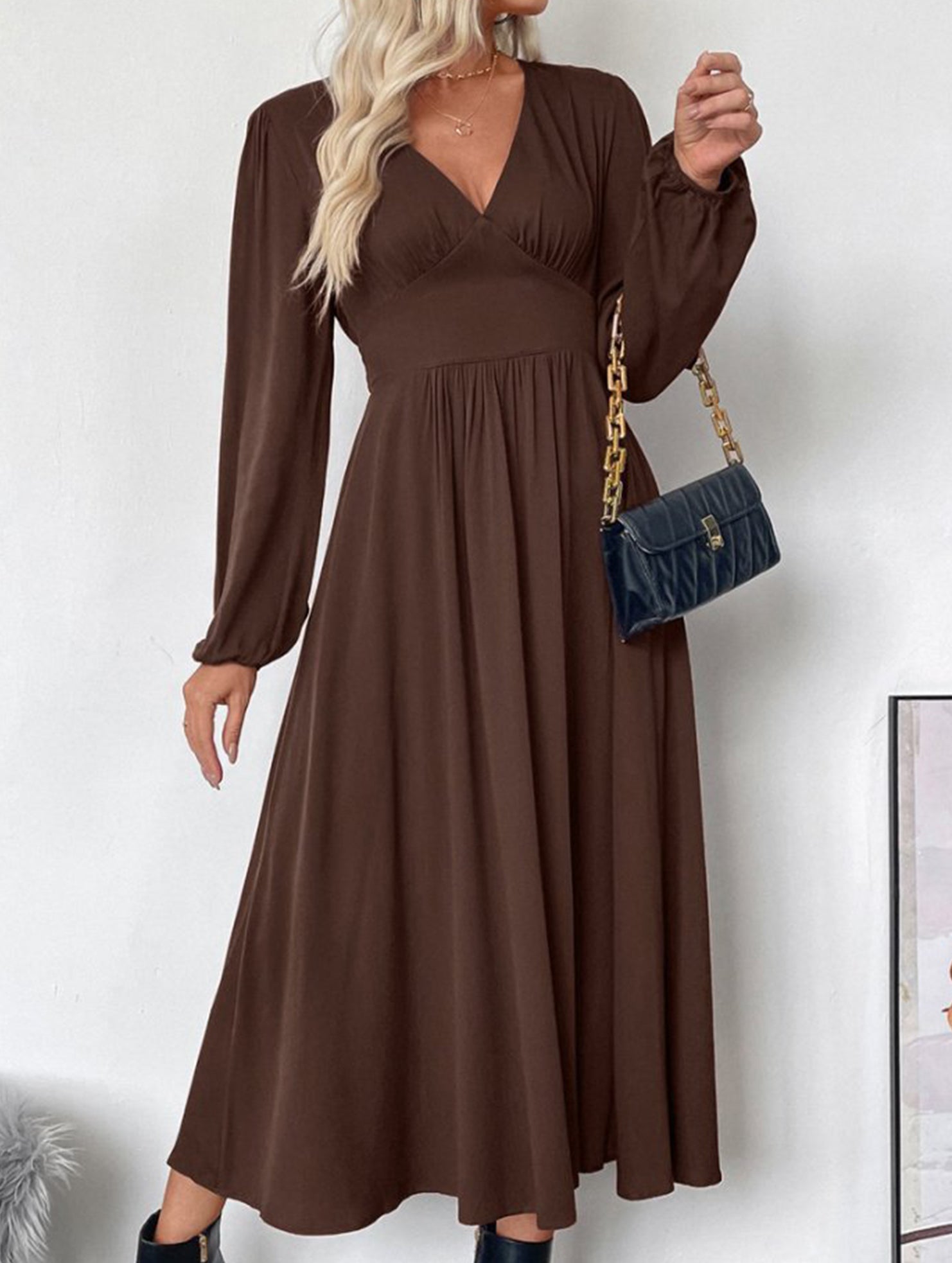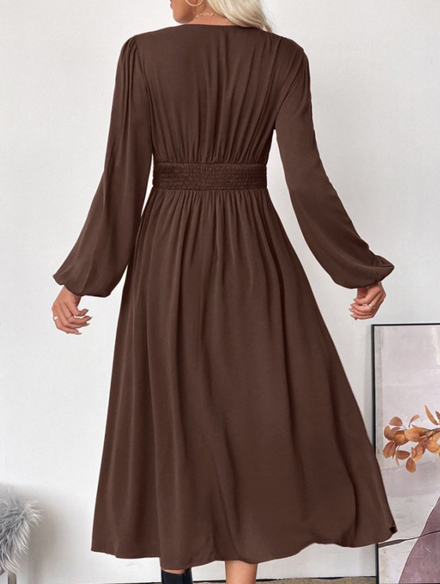 xRetro waist deep V neck dress
