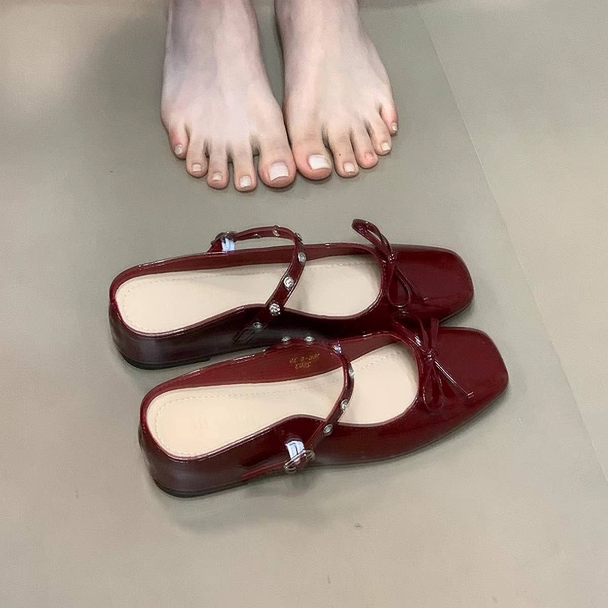 The Rhinestone Bow Wedge Mary Jane Mules adds a refined touch with its clean and modern silhouette.
