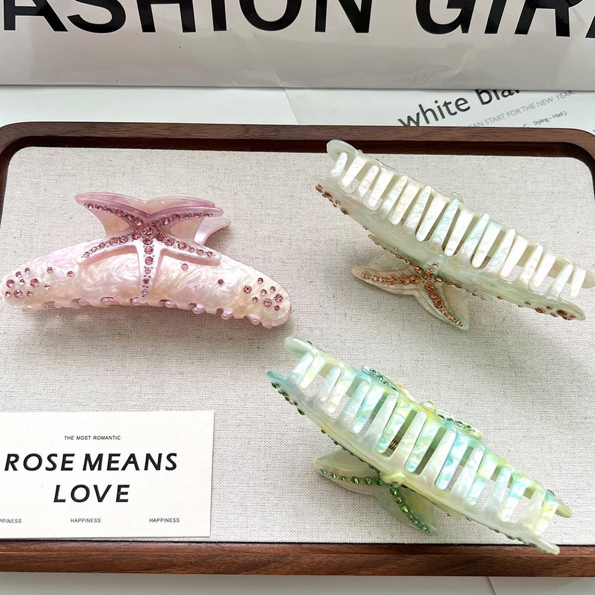 RHINESTONE STARFISH HAIR CLAW SWEET ACETATE CLIP_CWAHA6018