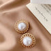 S925 Silver Needle Pearl Stud Geometric Earrings