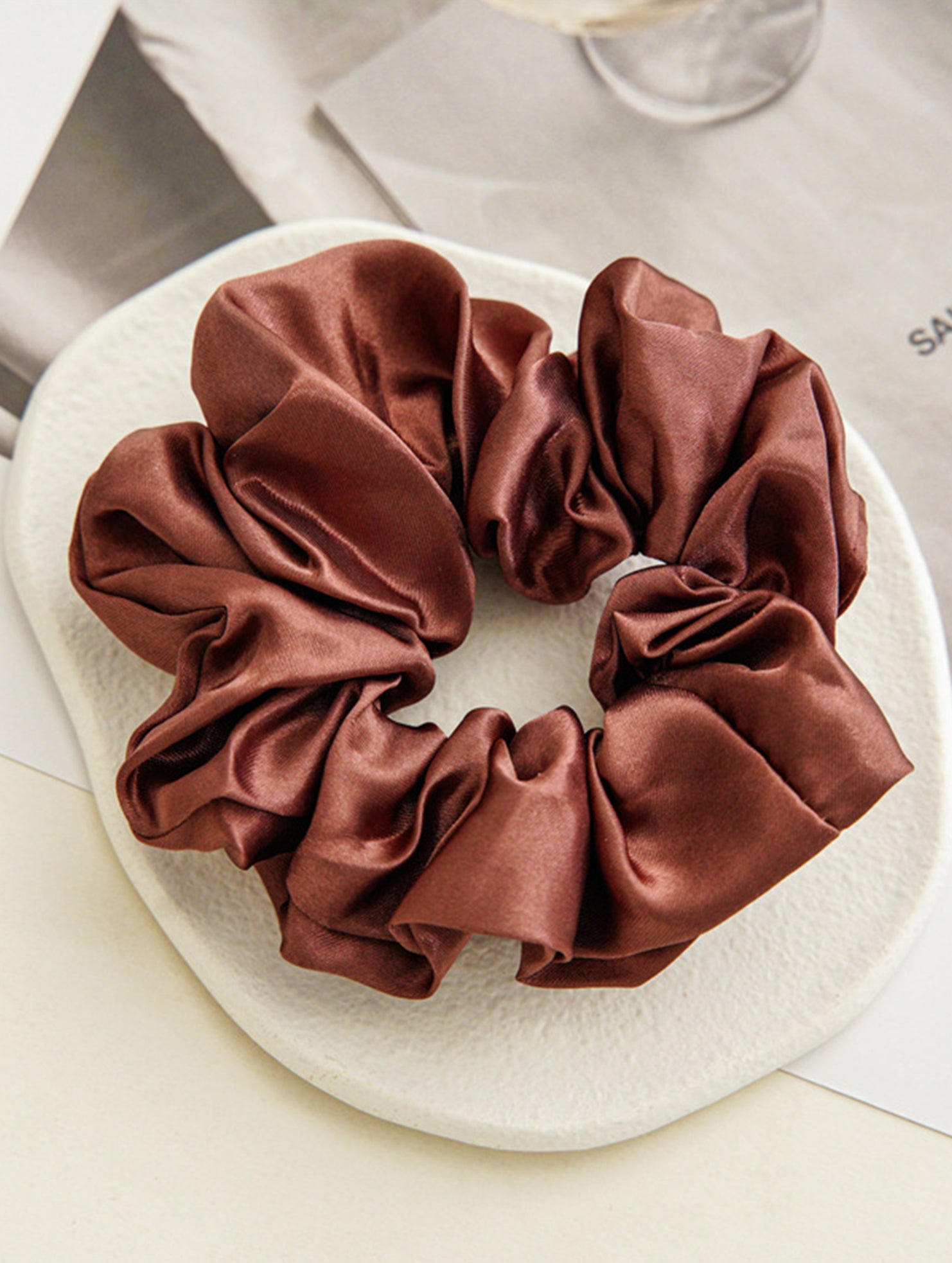 Satin fabric scrunchies simple and versatile hair tie_CWAHA0343