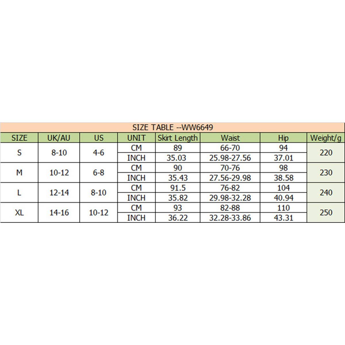 Description & Size Chart