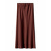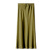SATIN LONG SKIRT HIGH WAIST DRAWSTRING SKIRT_CWAB4792