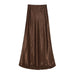 The Satin Skirt High Waist Elastic Pattern Long Skirt adds a refined touch with its clean and modern silhouette.