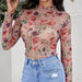 The Semi Sheer Floral Print Mesh Lace Slim Fit Top adds a refined touch with its clean and modern silhouette.