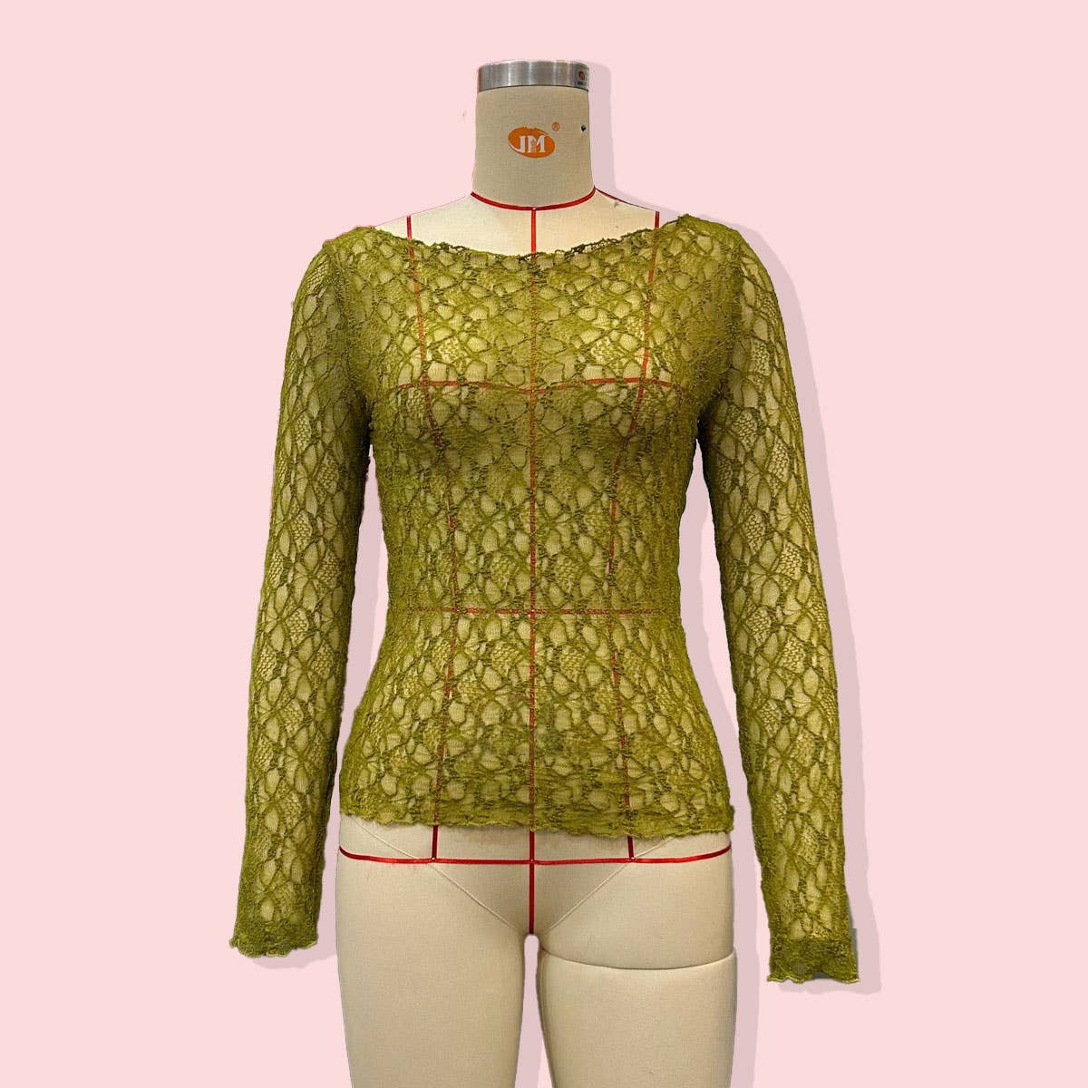 SEMI SHEER MESH LACE T SHIRT SLIM FIT CROPPED TOP_CWTBLL2661