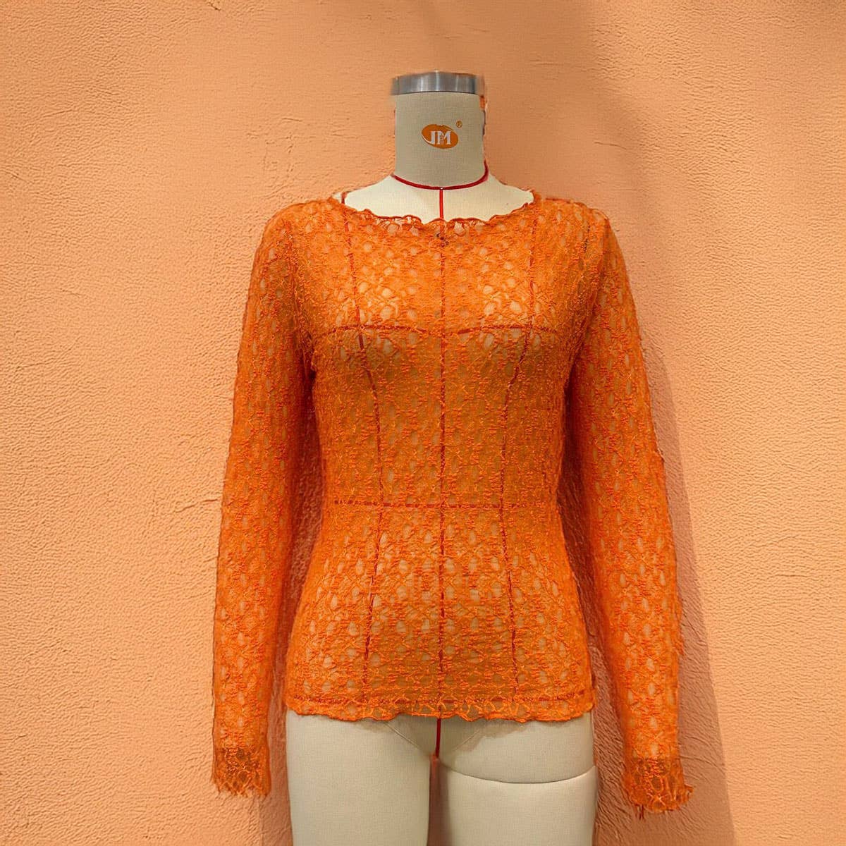 Experience versatile styling with the Semi Sheer Mesh Lace T Shirt Slim Fit Cropped Top, crafted to adapt effortlessly.
