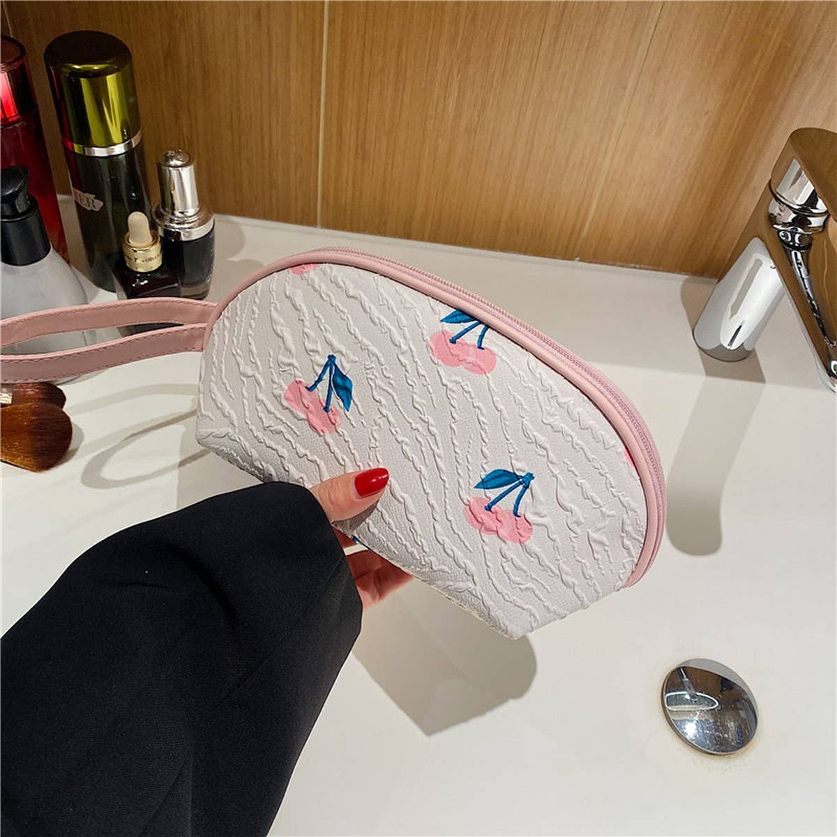Discover the Semicircular Floral Simple Portable Cosmetic Bag, a piece designed to blend style and everyday comfort.