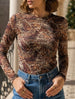 Sexy Leopard Print Sheer Fitted Mesh Shirt