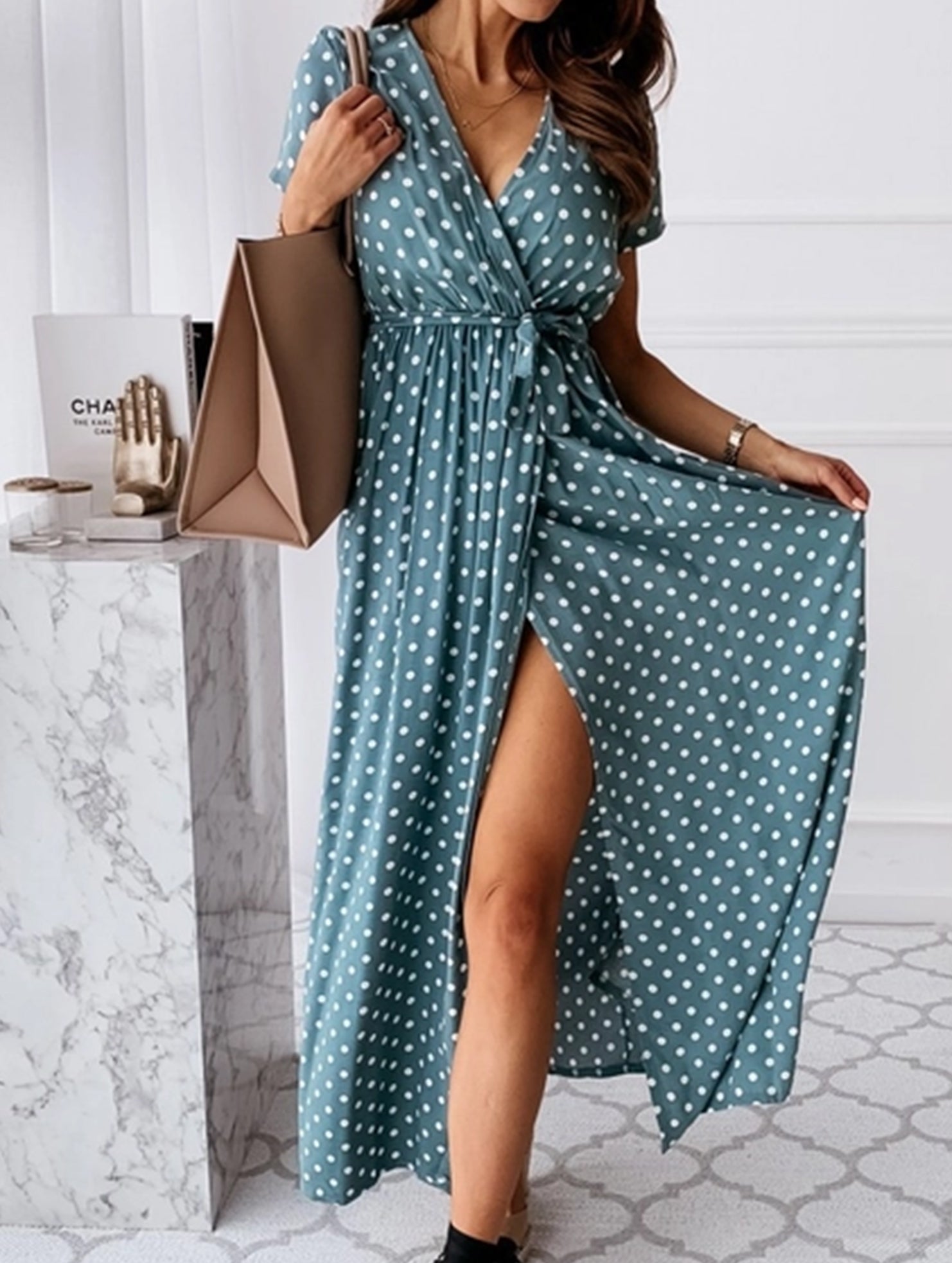 xBohemian V-Neck Polka Dot Dress ??Stylish Short Sleeve for All Seasons