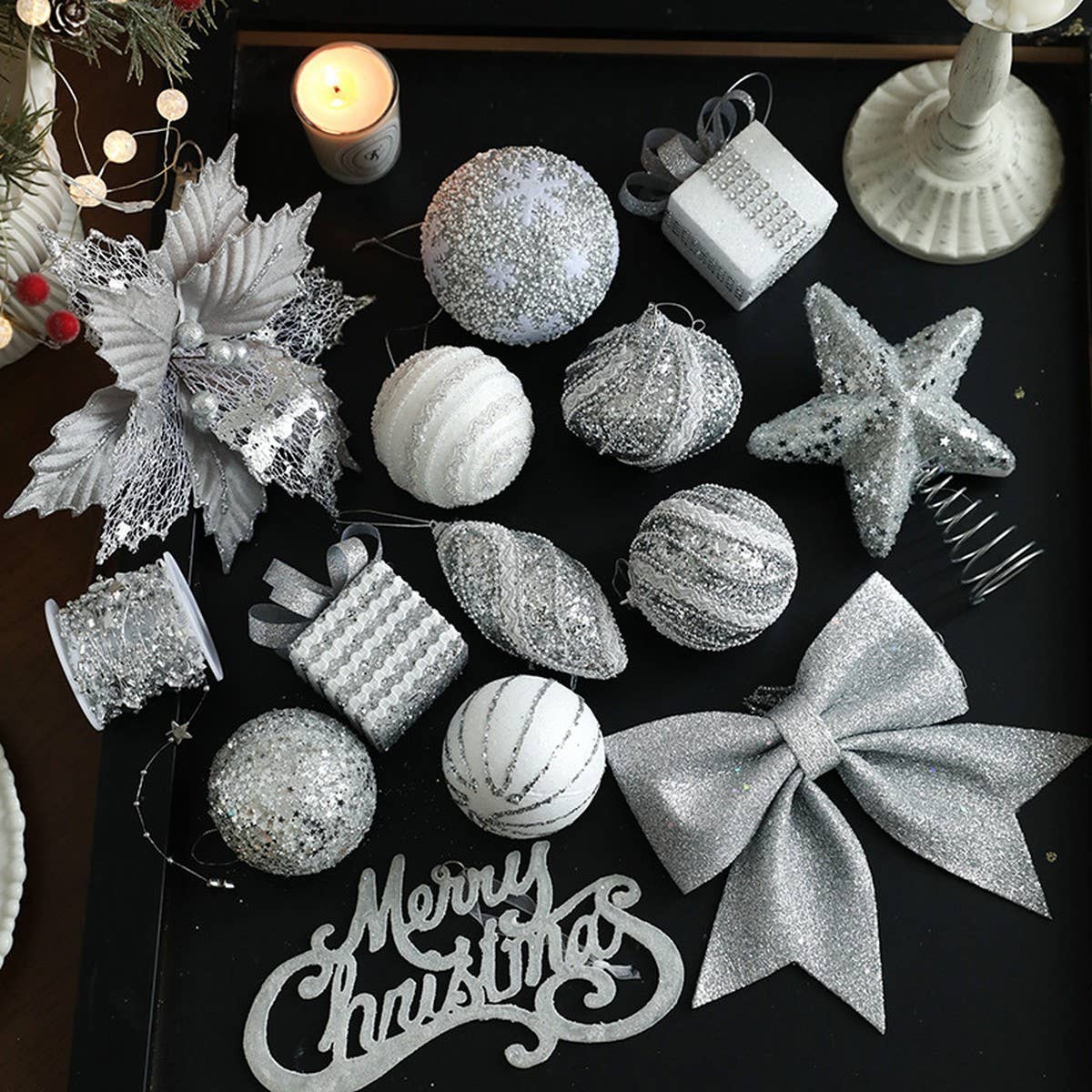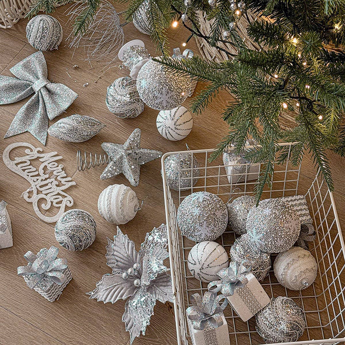 A polished essential, the Silver Foam Glitter Xmas Balls Bows Tree Topper transitions seamlessly from casual to elevated looks.
