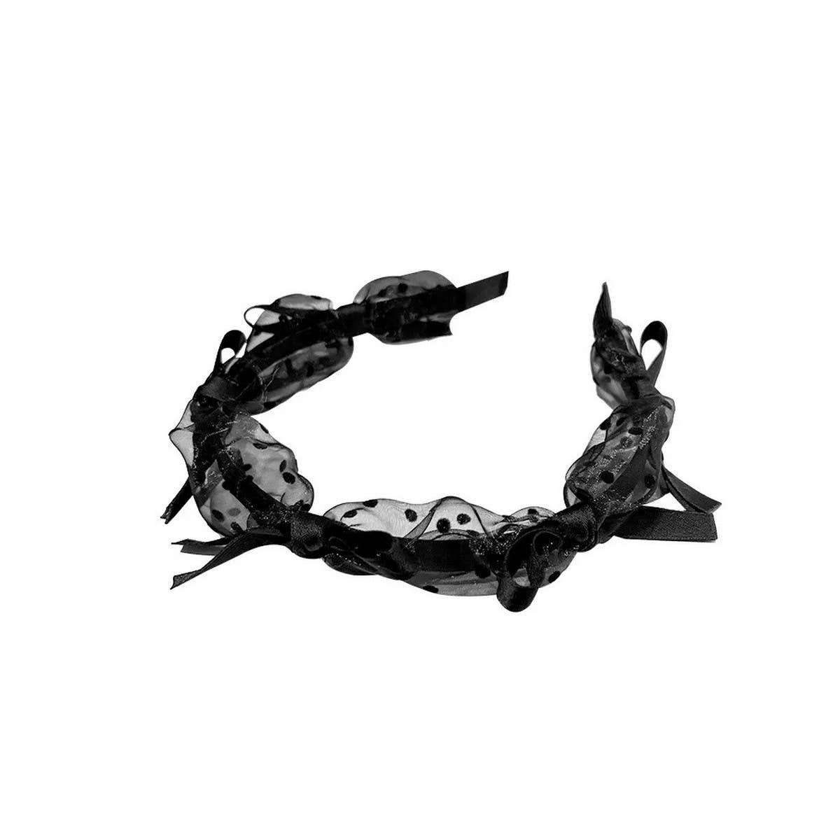 Experience versatile styling with the Simple Black Polka Dot Bow Lace Headband, crafted to adapt effortlessly.