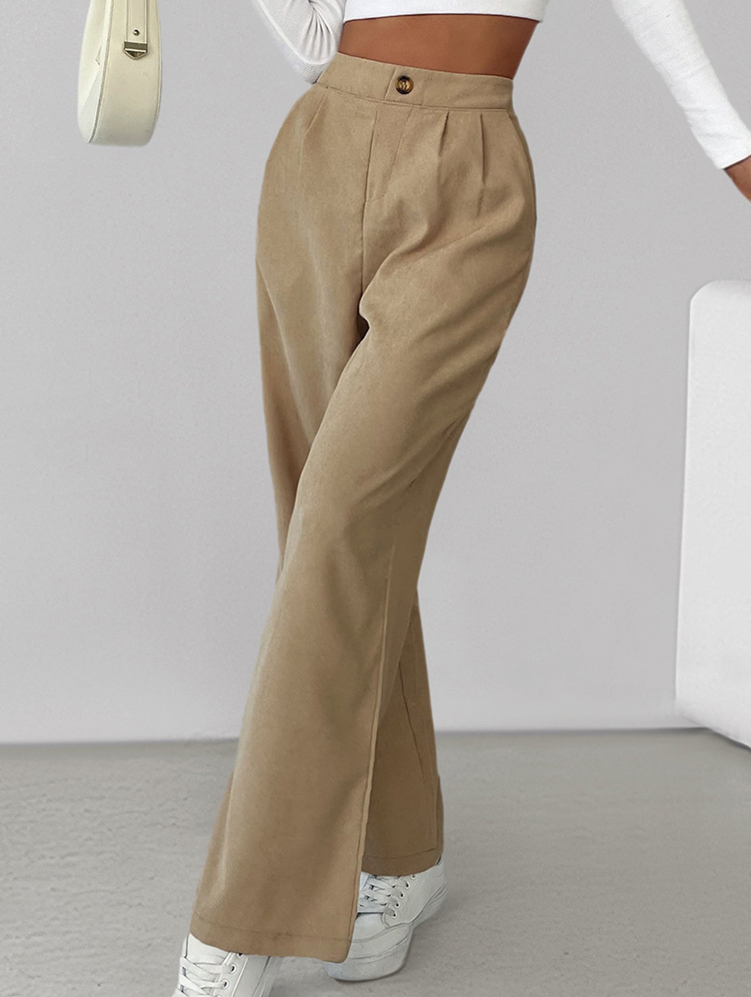 Simple high-waist solid color wide-leg pants