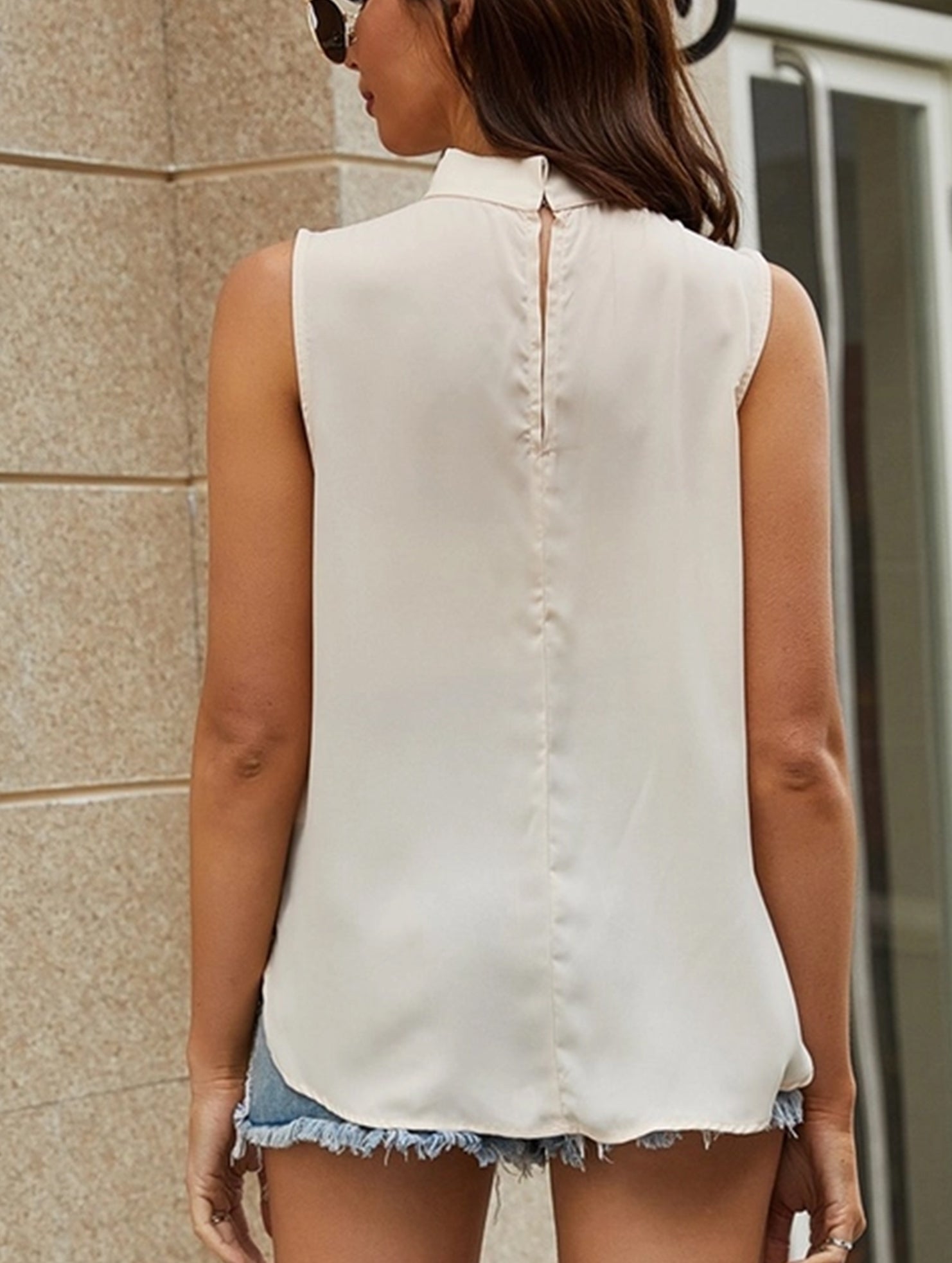 Stay cool and effortlessly stylish with this sleeveless round neck top featuring a woven texture and button-back design. Crafted from breathable polyester, it's perfect for warm-weather layering or a polished minimalist look.