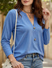 Solid Color Button Three-Quarter Sleeve V-Neck T-Shirt