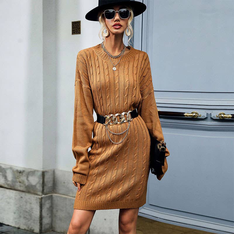 With a clean silhouette and easy wearability, the Solid Color Casual Twisted Long Sweater Dress fits seamlessly into your rotation.