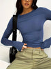 Solid Color Crew-Neck Basic Long-Sleeved Shirt